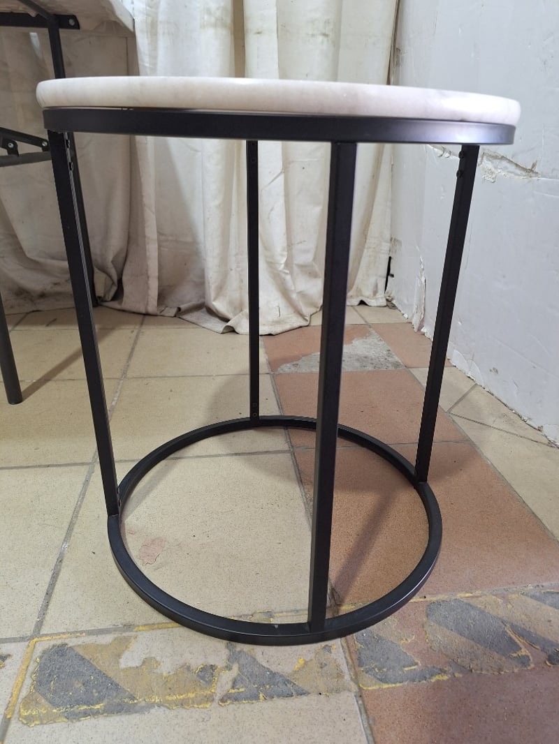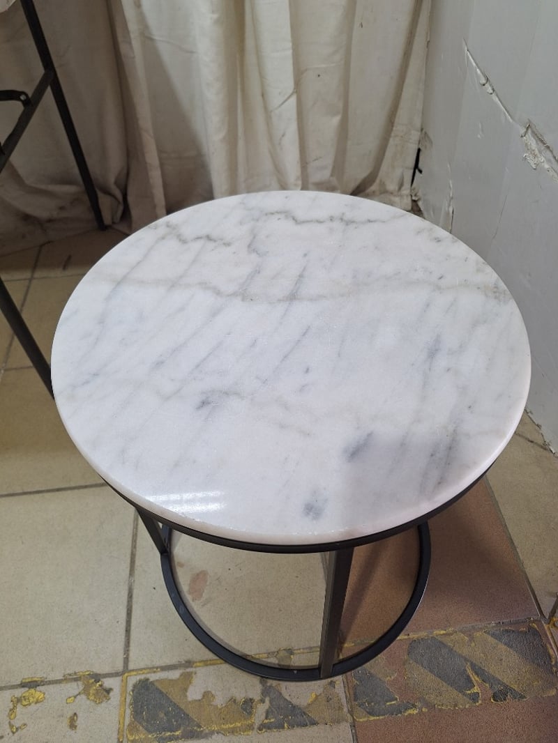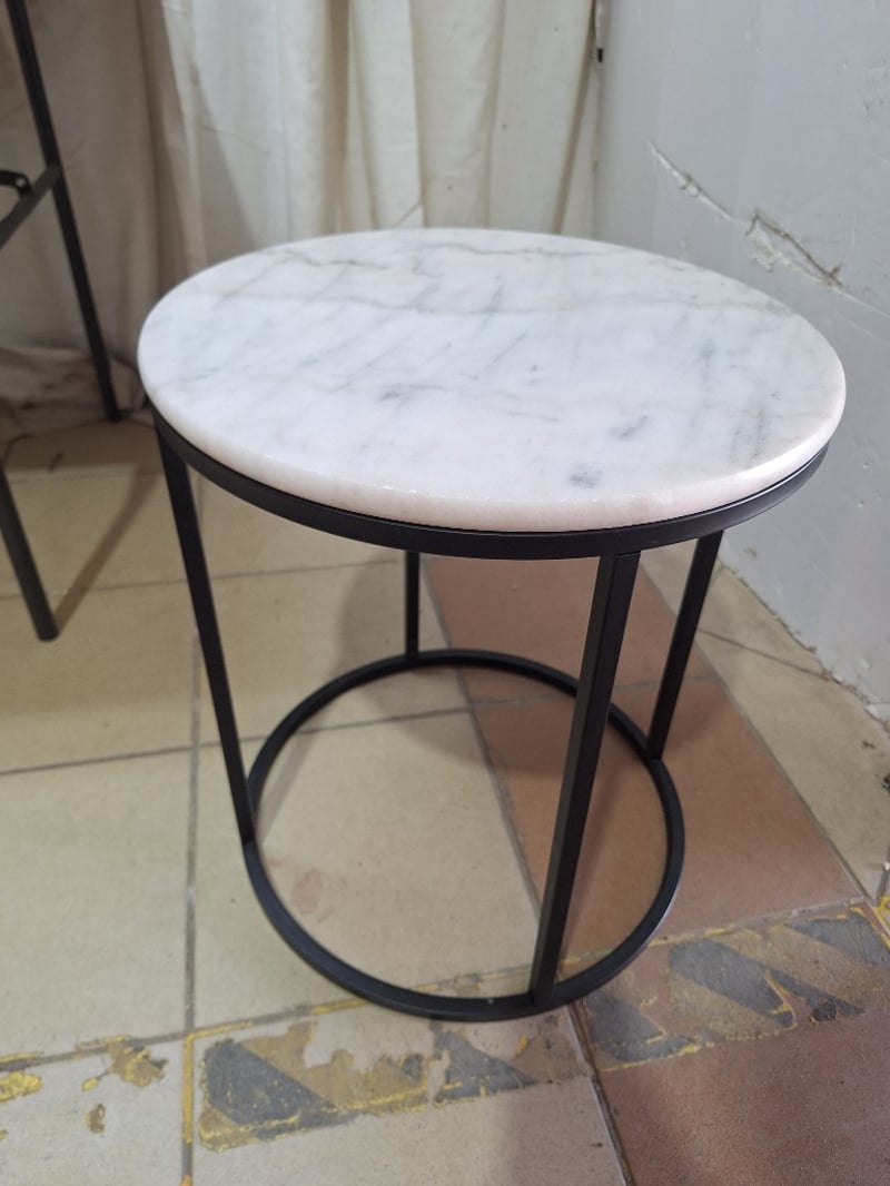 Side Table, Marble Style, White & Black Finish