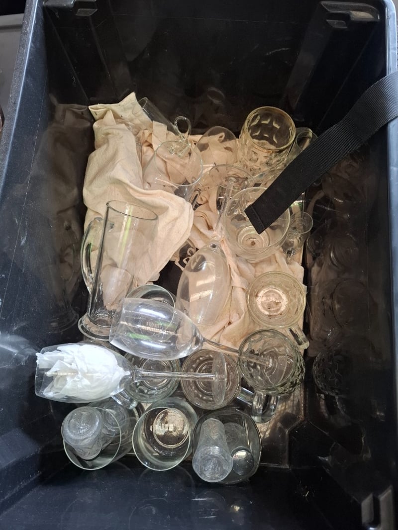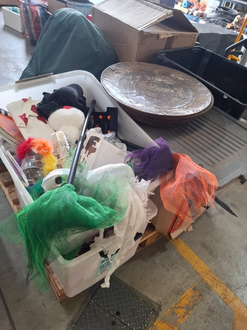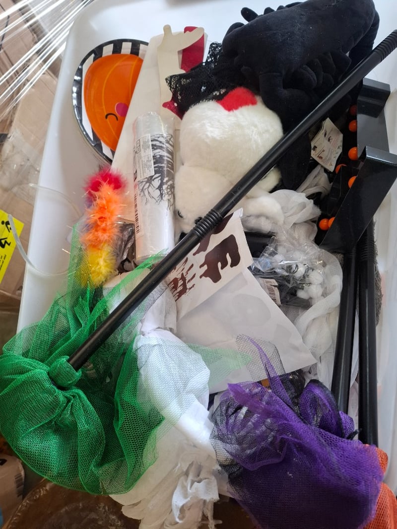 Assortment pallet of Halloween decorations, glassware, food containers and more Note: Sold as lot Note: inspection Recommended