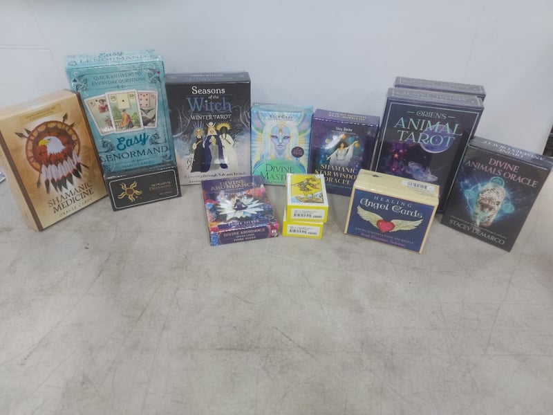 Assorted Card Decks, including Shamanic star Wisdom Oracle, The Rider Tarot Deck, Animal Tarot, and more