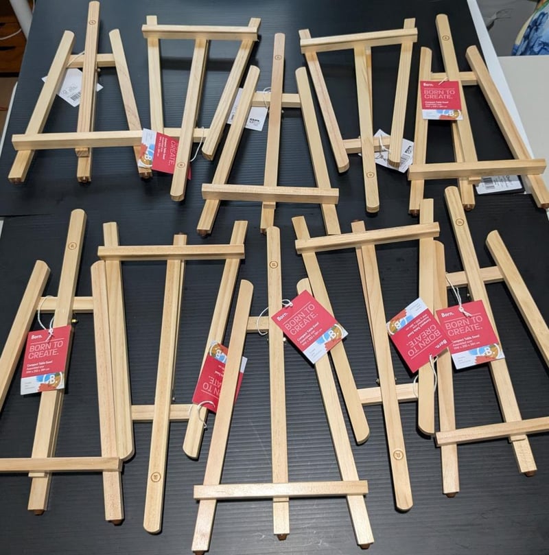 Table easels x 10, 38cm tall, $110 value, sold as lot