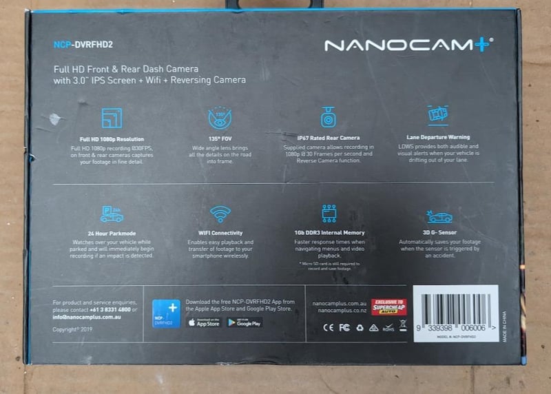 Nanocam monitor full HD 1080 car dash video camera New to box