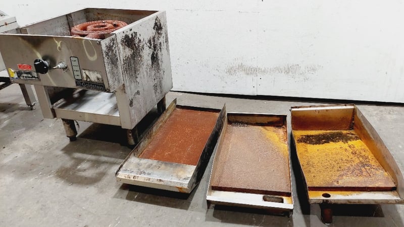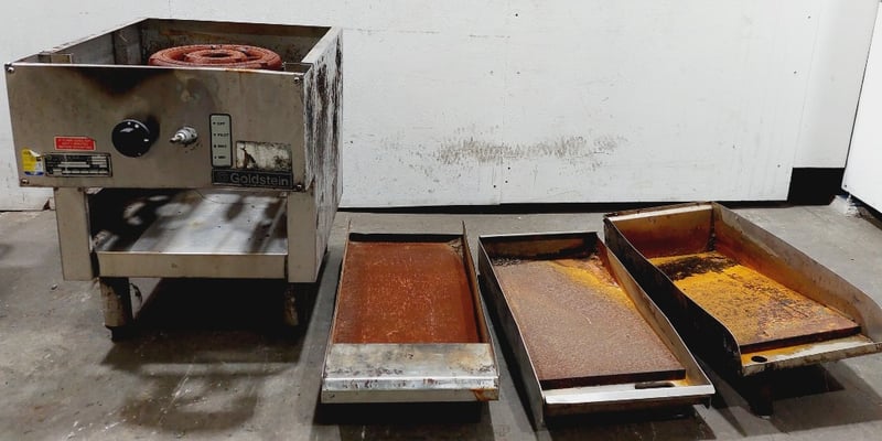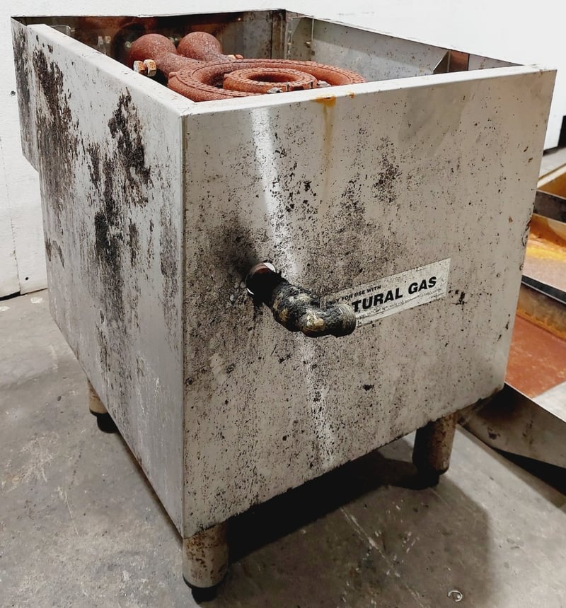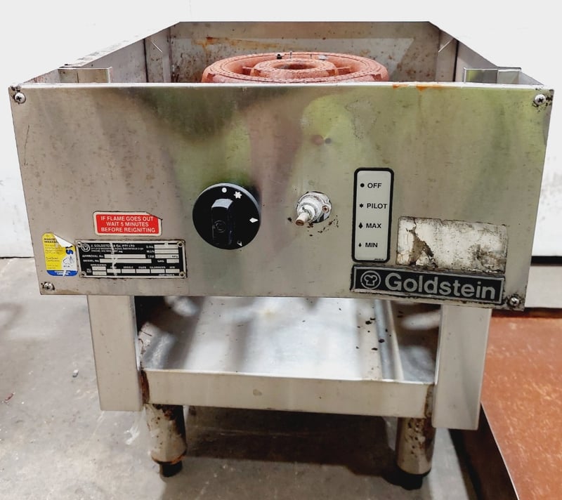 Commercial Gas Stock Pot Boiling Table, J. Goldstein & Co. model SP1855FFD Dimensions 46x 66x 56cm Note: untested, signs of wear
