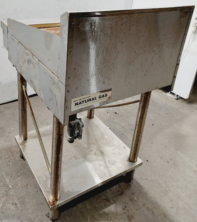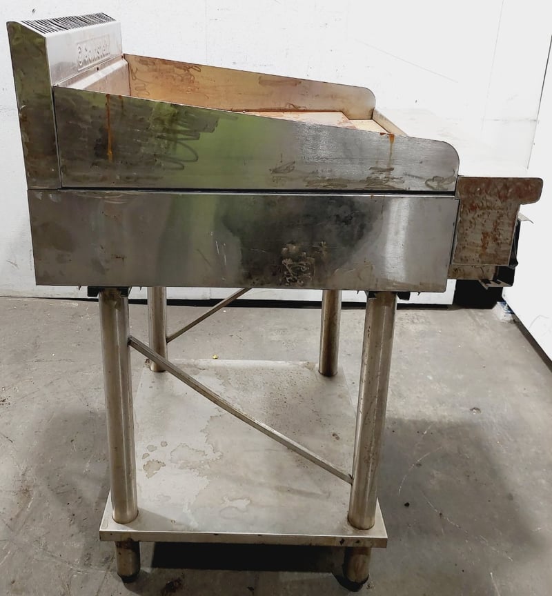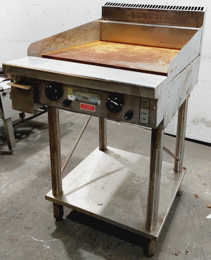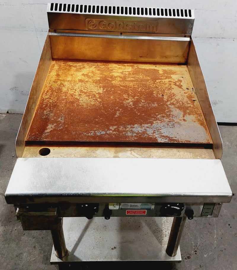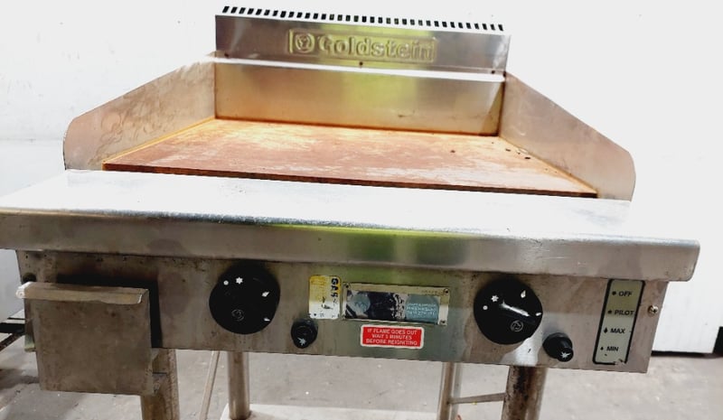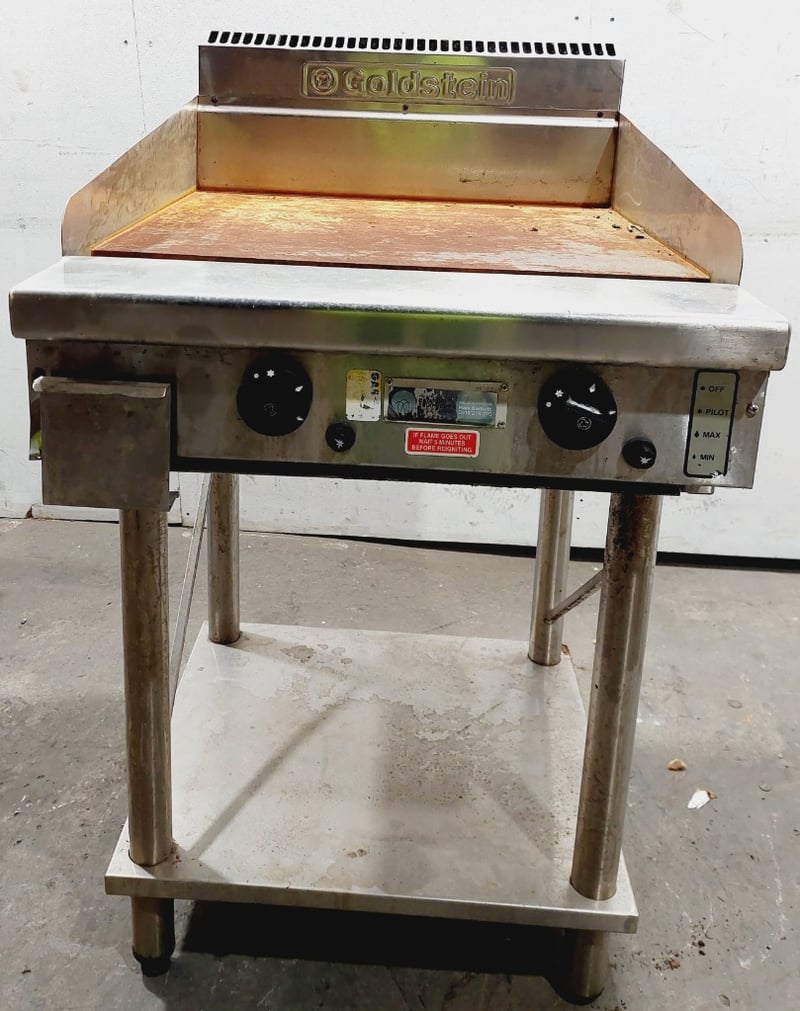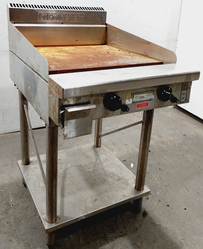 Commercial griddle unit .The primary units feature stainless steel construction with cast iron cooking surfaces, dual heating controls. Dimensions: 61 x 80 x 110cmNote: untested,signs of wear