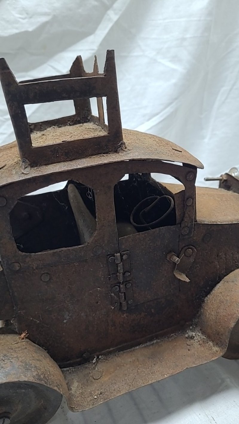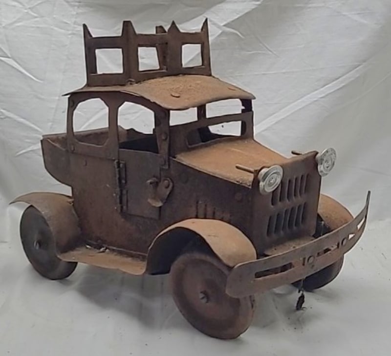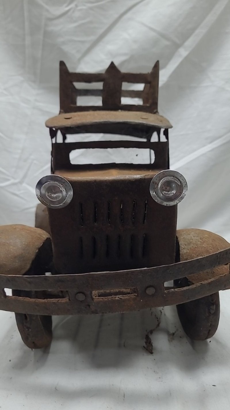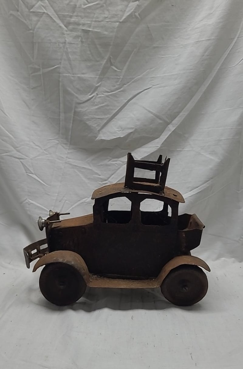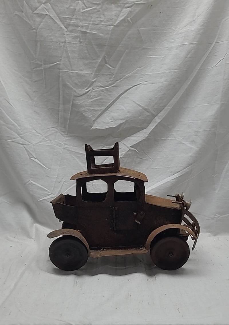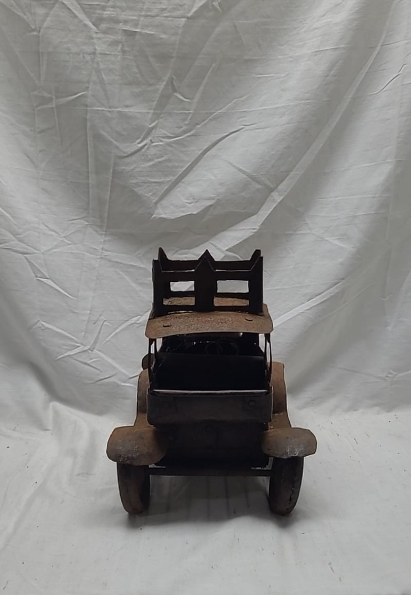 HANDICRAFTED RUSTIC IRON CAR SCULPTURE.