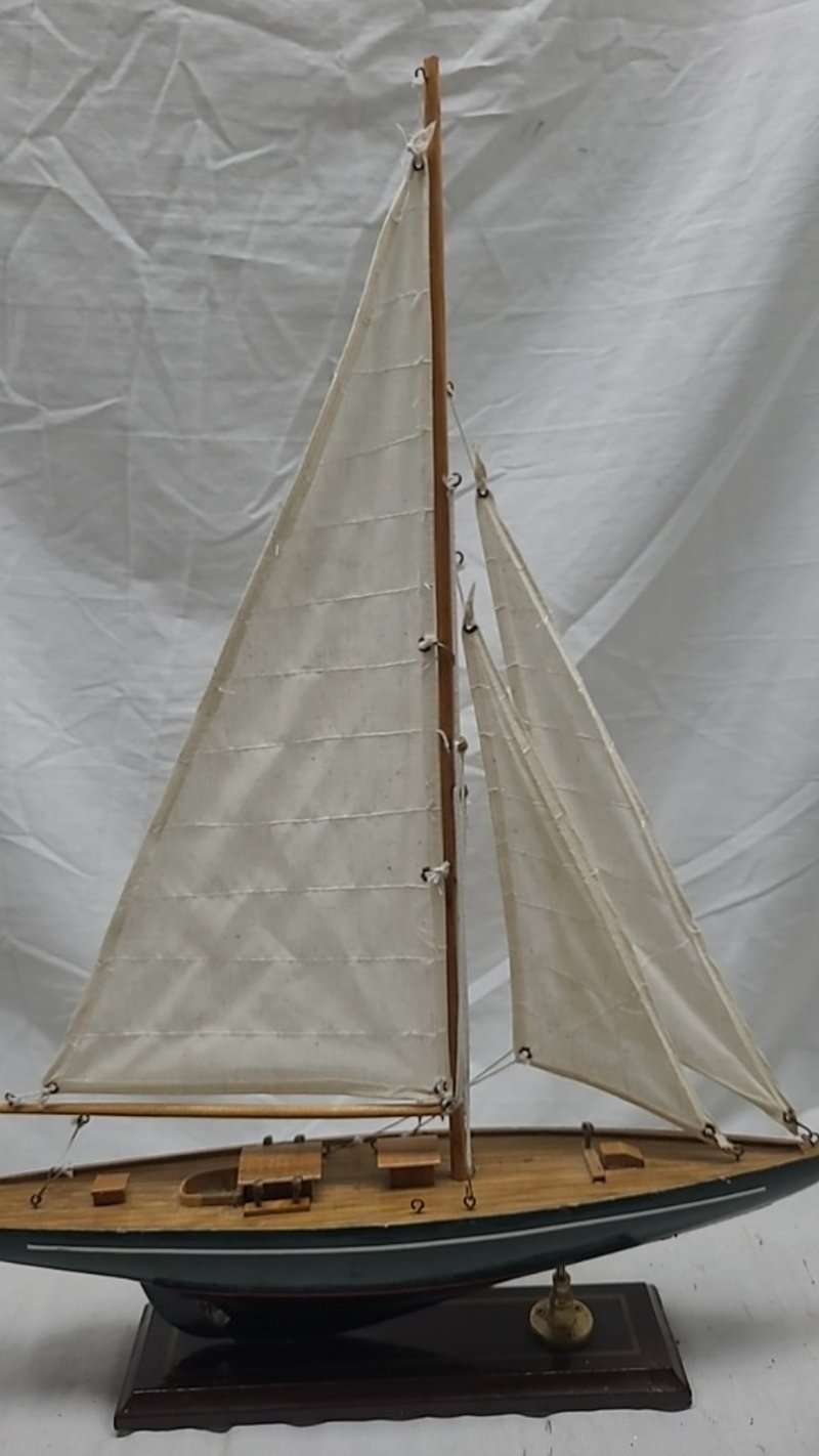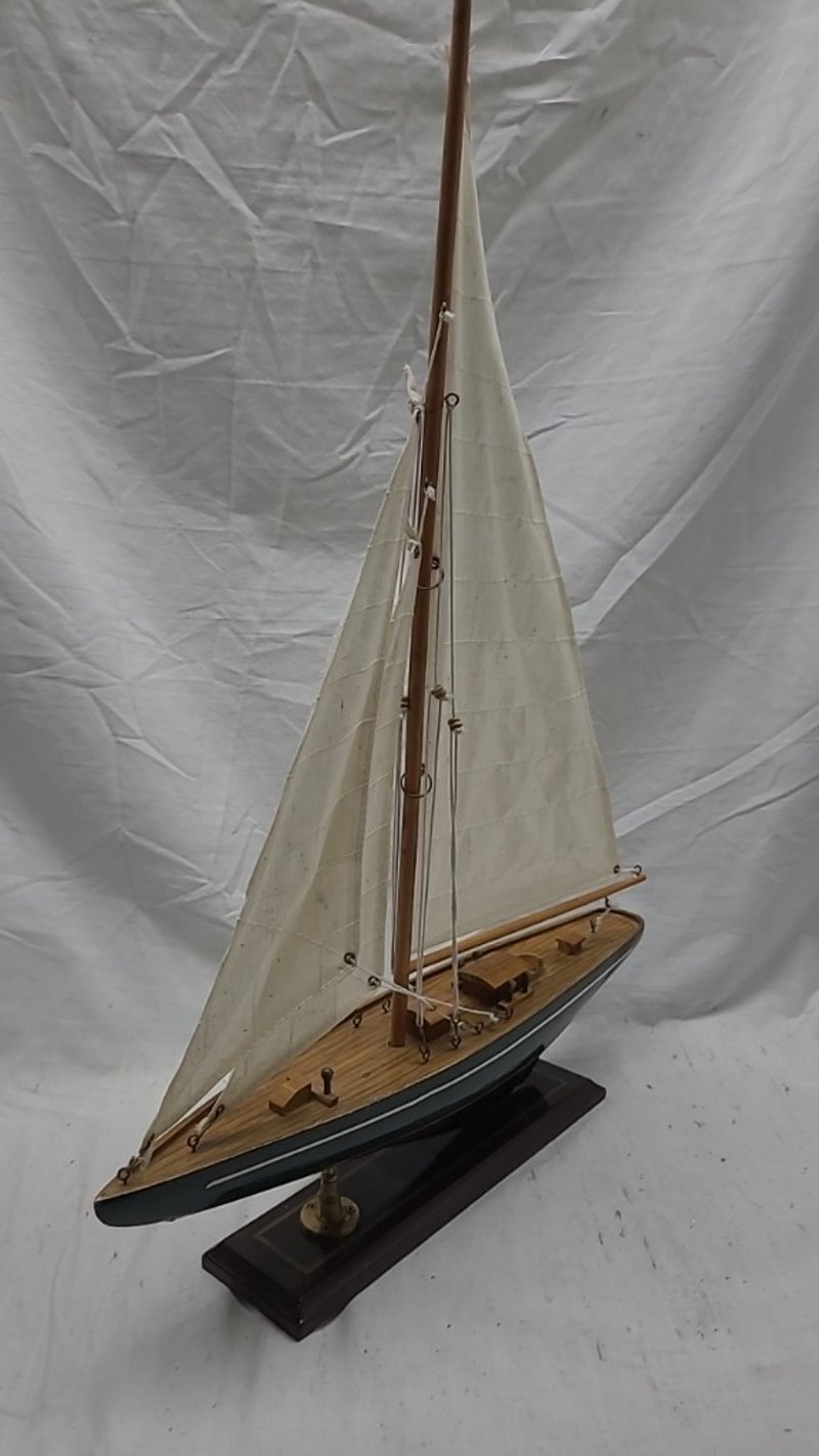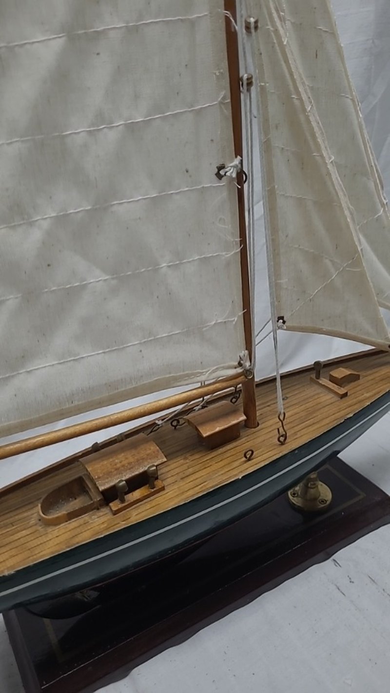 HANDICRAFTED WOODEN DISPLAY MODEL OF THE ENDEAVOUR J-CLASS SAILING YACHT.