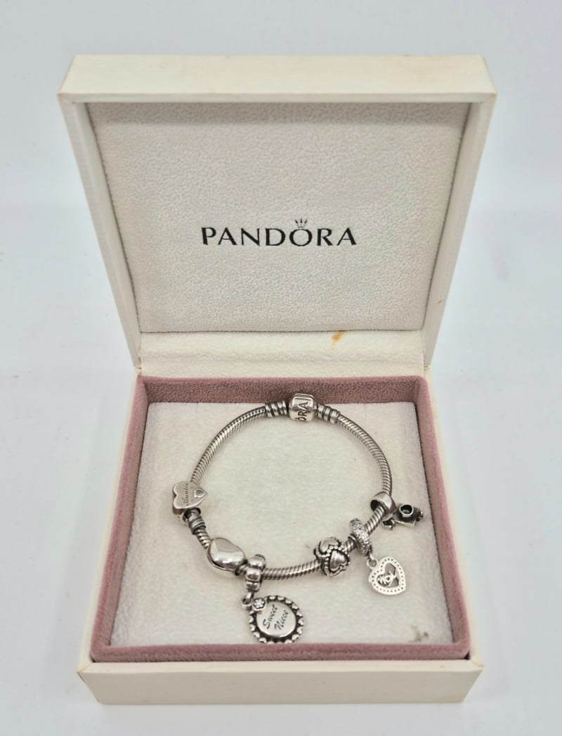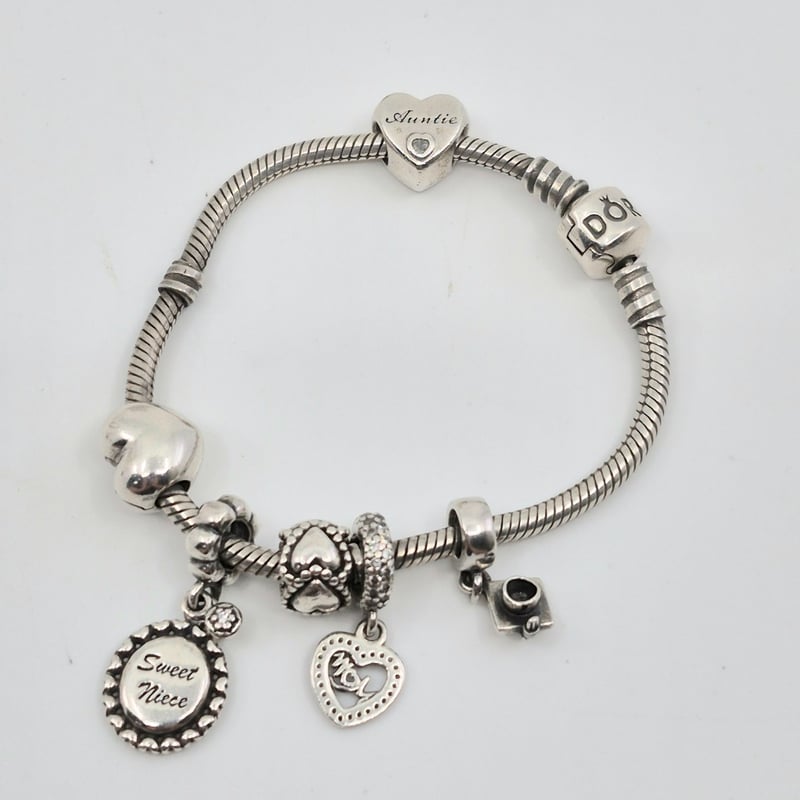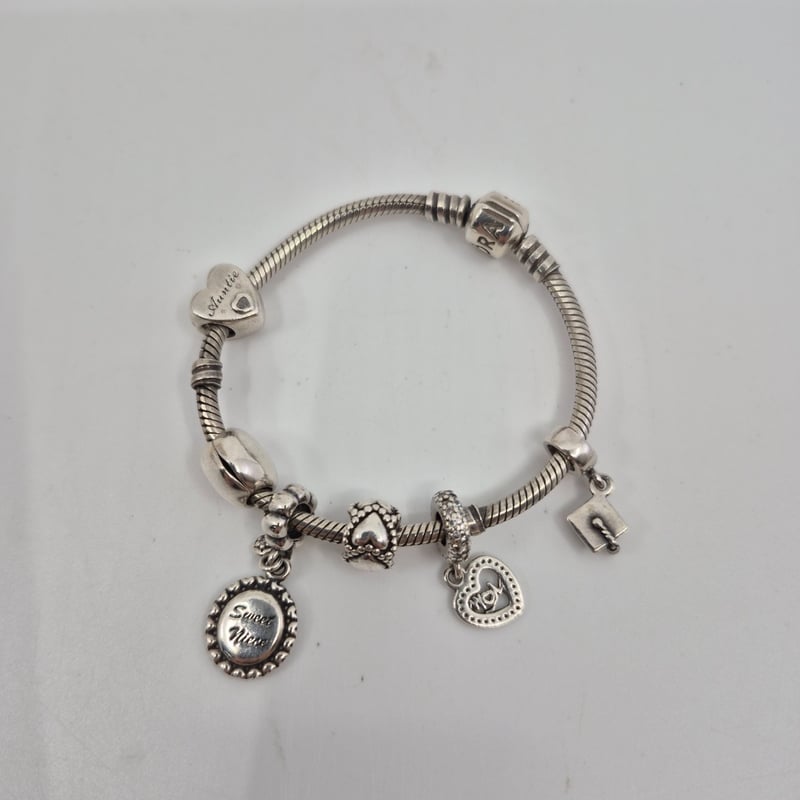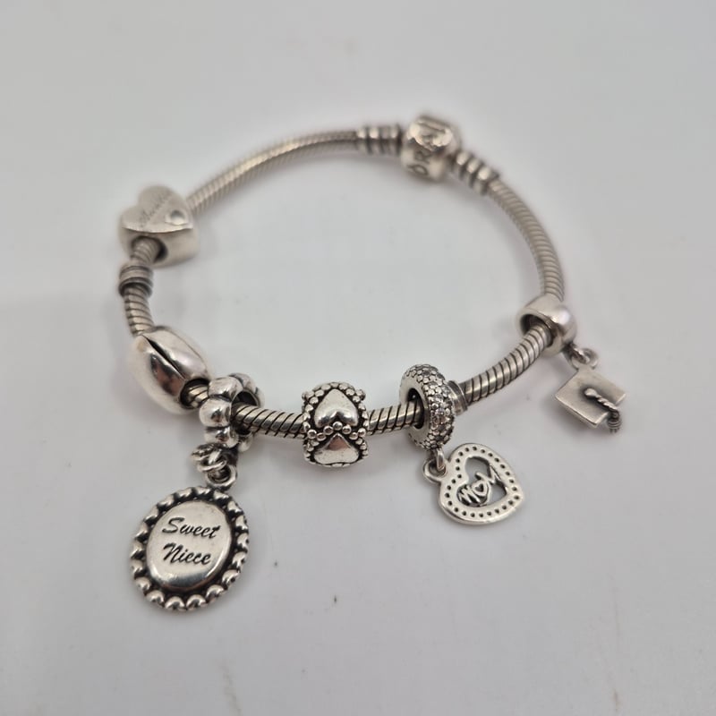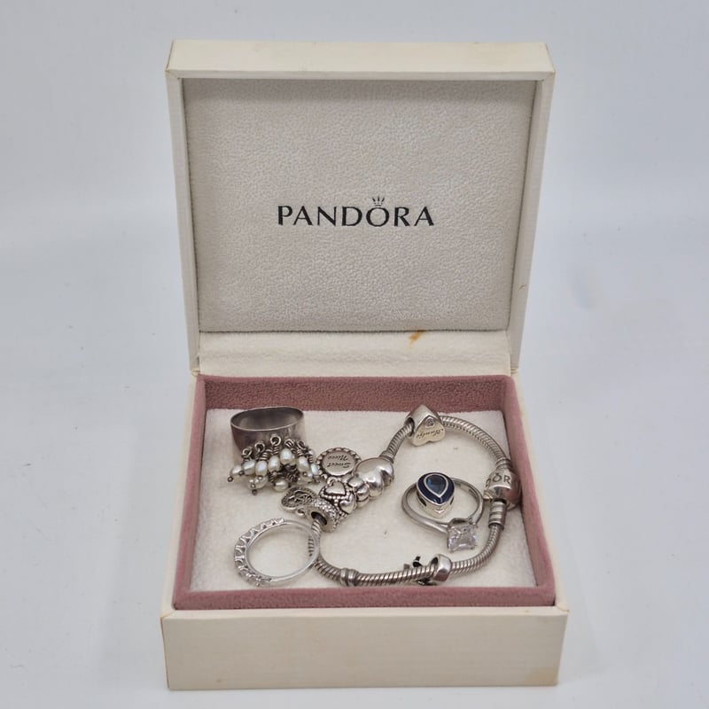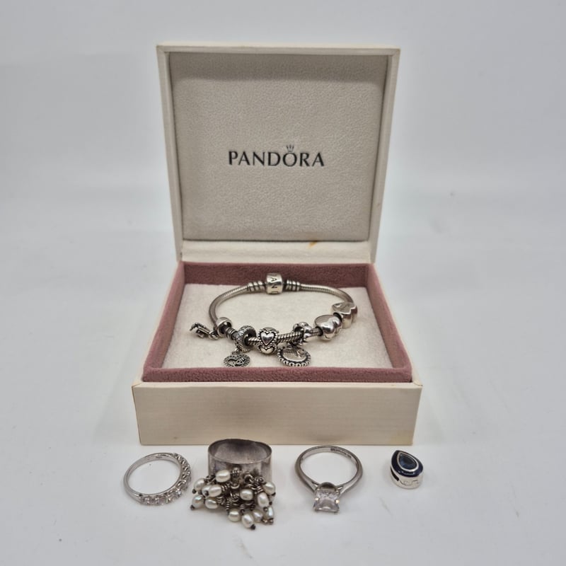 COLLECTION OF SILVER JEWELLERY INCLUDING PANDORA BANGLE WITH CHARMS Condition: Good - Refer To Images 587918+6