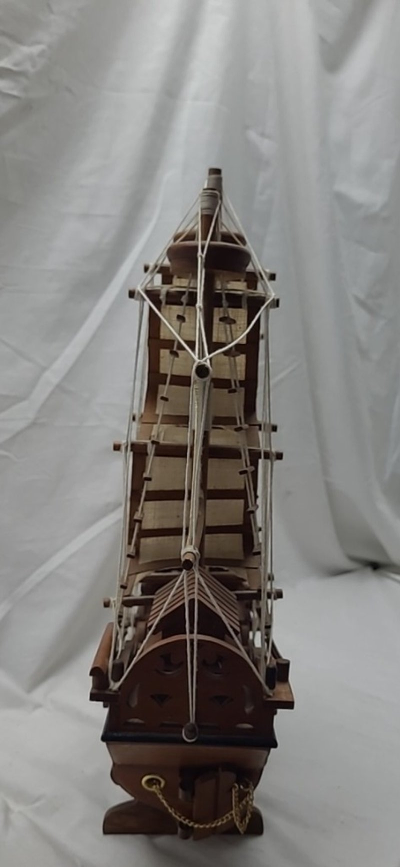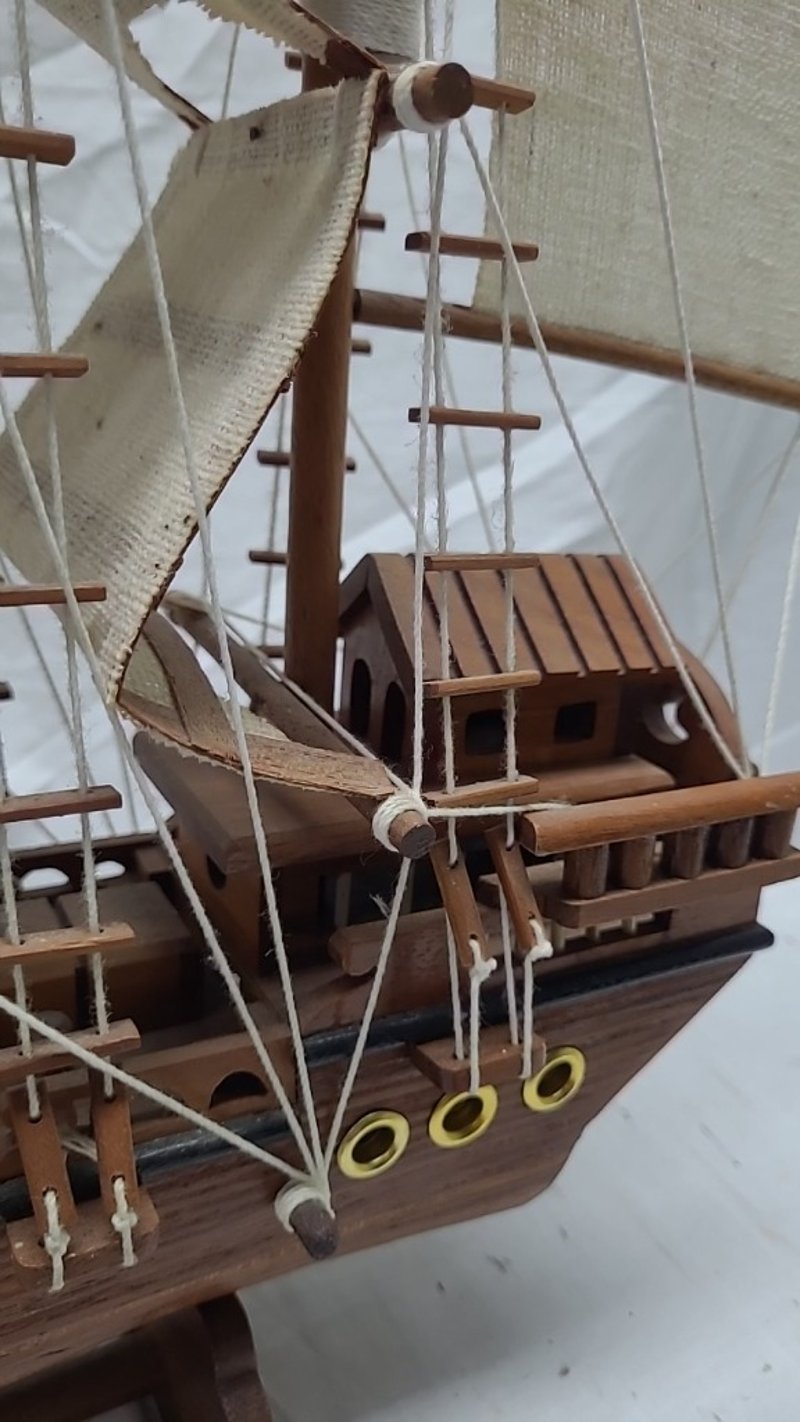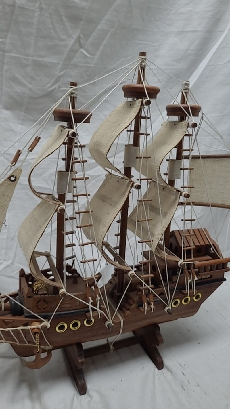 HANDICRAFTED WOODEN MODEL PIRATE SHIP. Item Size: Height: 42cm, Width: 55cm, Depth: 11cm Condition: Good - Refer To Images 587911+2