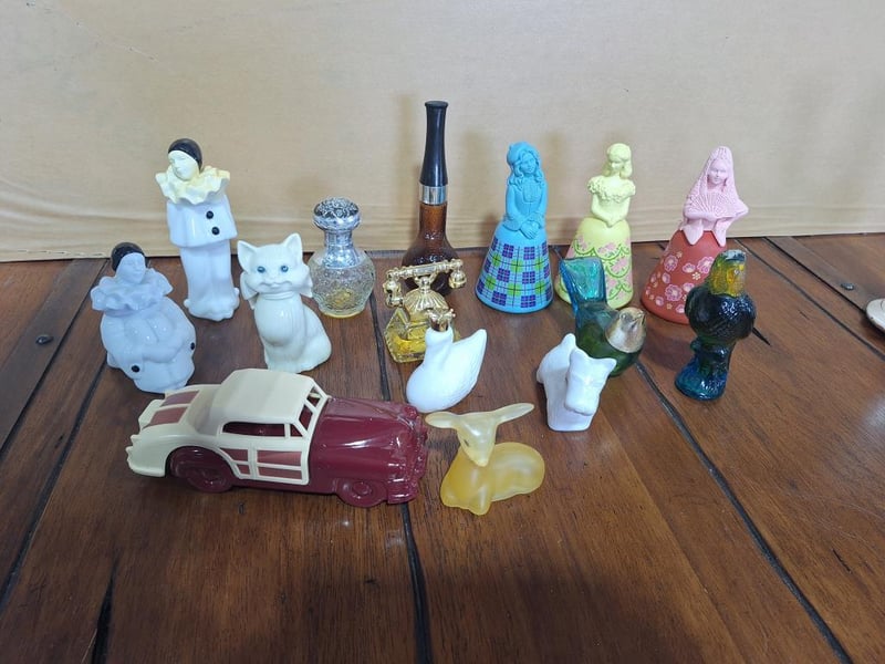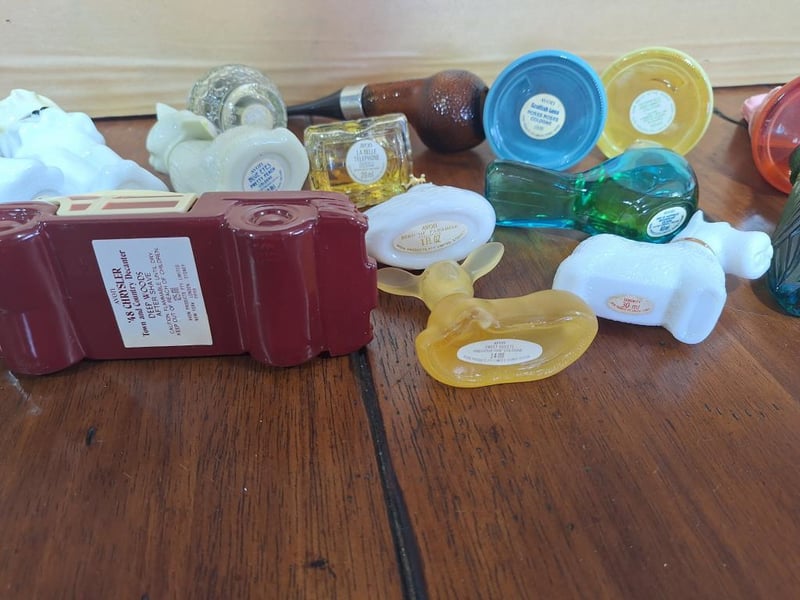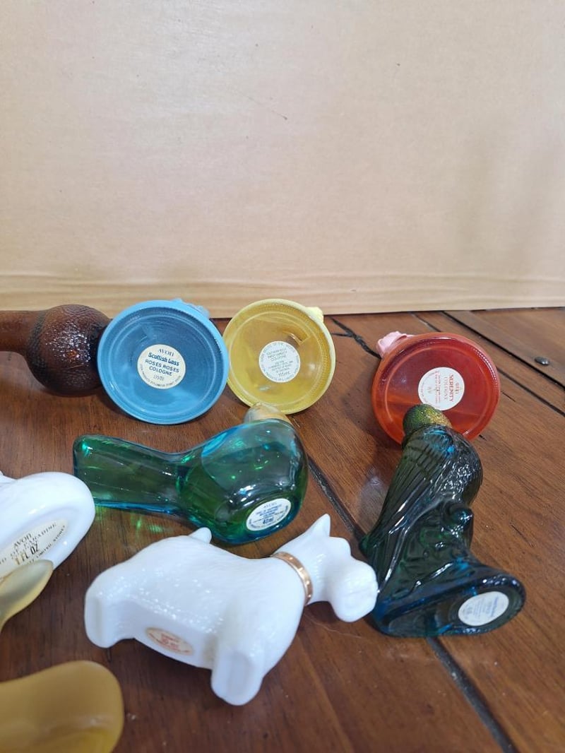AVON BOTTLESSome Full And Some Empty. Includes: '48 Chrysler Town And Country Cologne Decanter, Pierrot Milk Glass Clown, La Belle Telephone, Smoking Pipe Bottle.Size: 25L x 20W x 15H cmCondition: Good - Refer Images584496+10