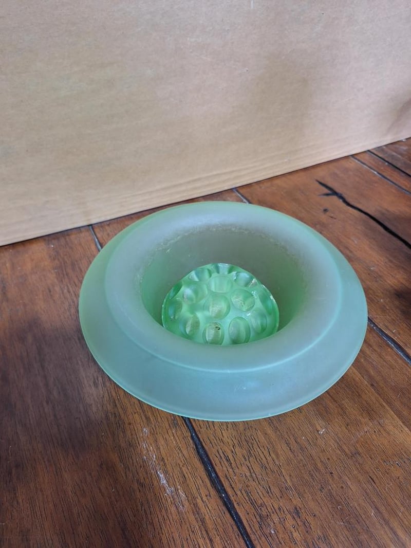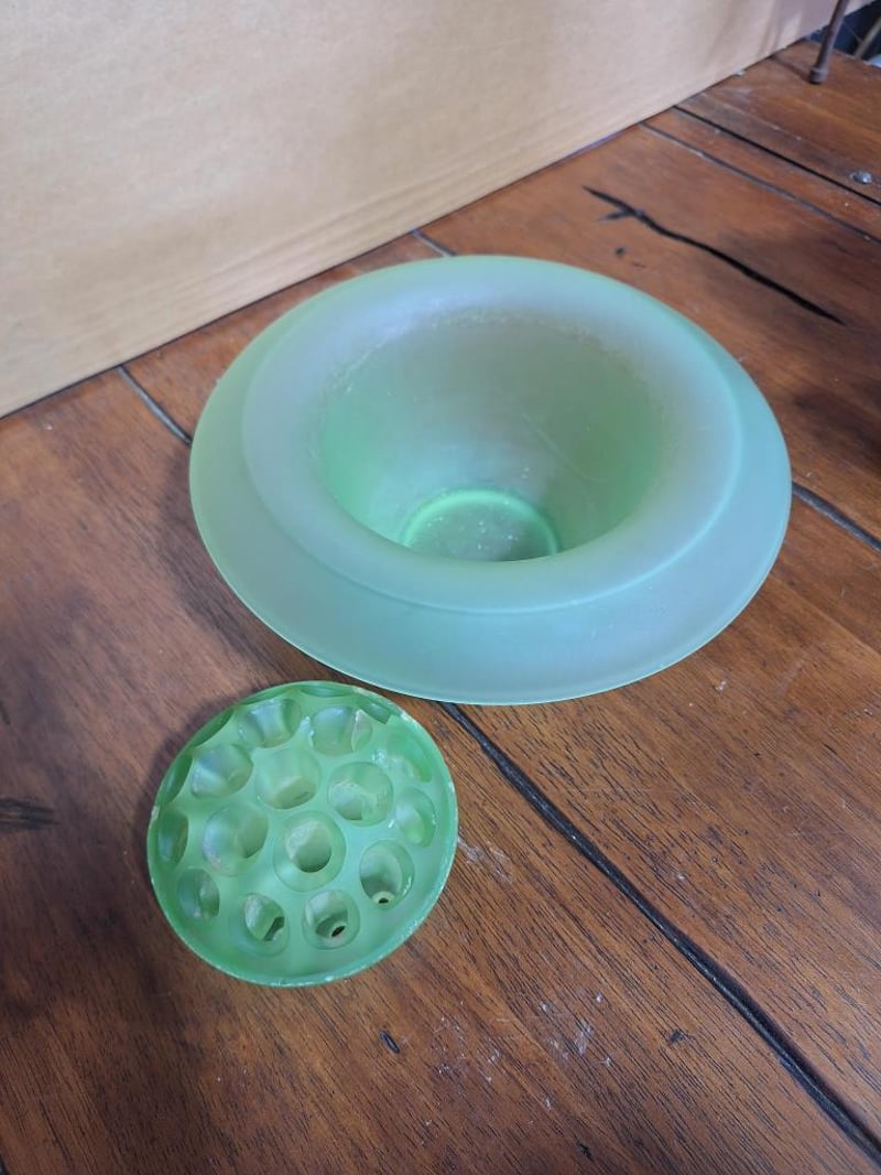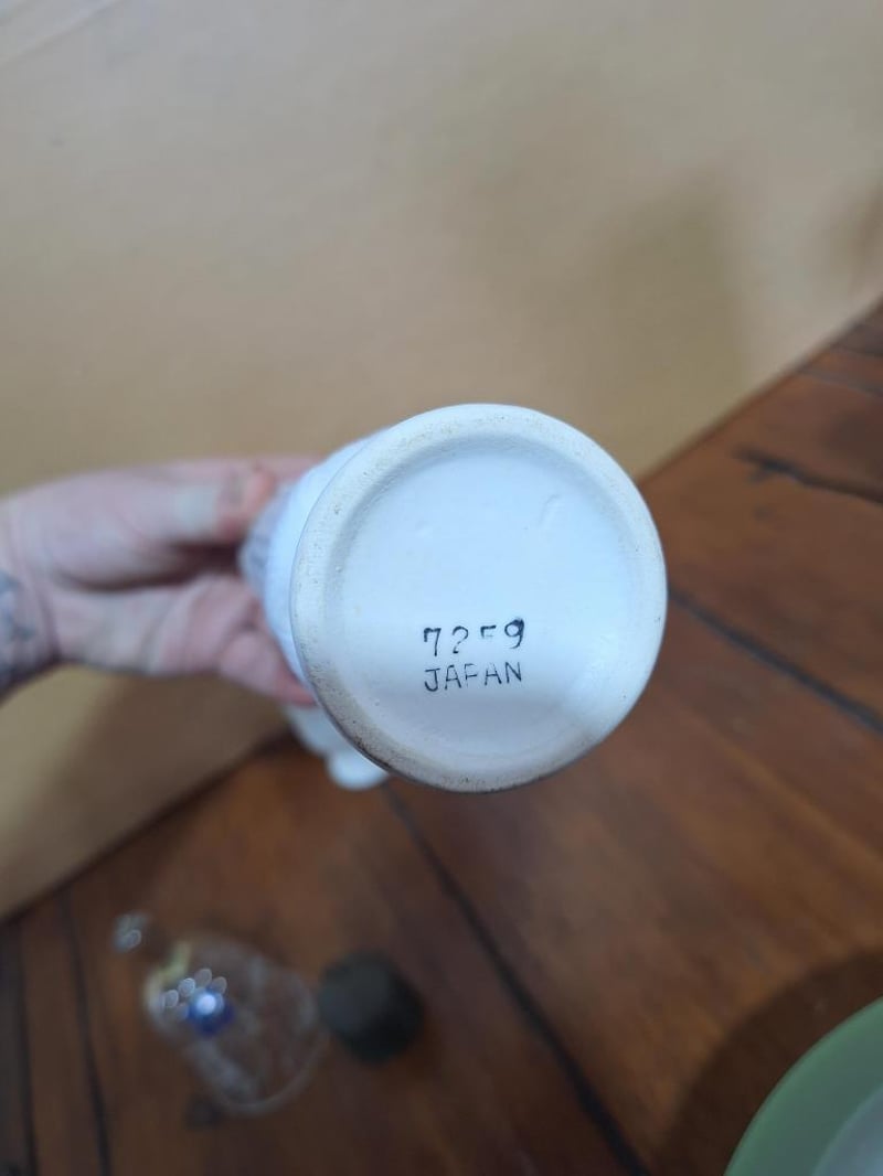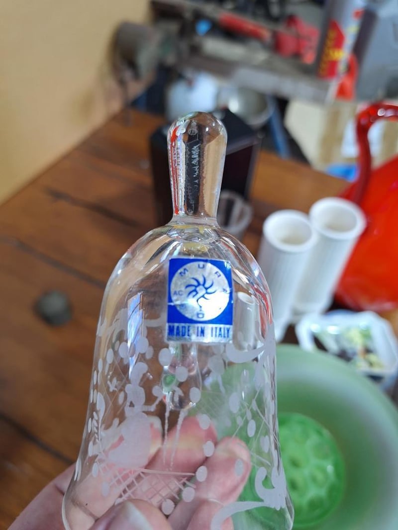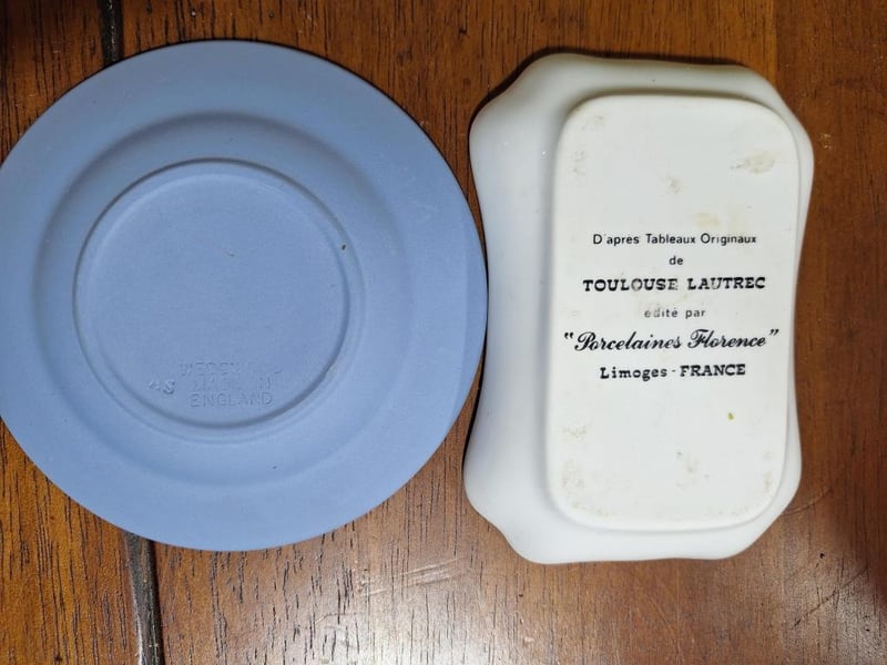 VINTAGE SET OF DÉCORVintage Set: Empoli Orange Cased Glass Jug, French Limoges Porcelain Trinket Dish, Wedgwood Blue Jasperware Trinket Dish, 2X White Fluted Vases With Japan Stamp On Base, Vintage Cristal D'Arques Bonneval 24% Lead Crystal Bud Vase Made In France, Green Depression Glass Bowl With Matching Flower Frog, Vintage Crystal Glass Bell Made In Italy And A Bell-Shaped Scale Weight. Size: 44L x 32W x 18H cmCondition: Fair - Refer Images584496+35