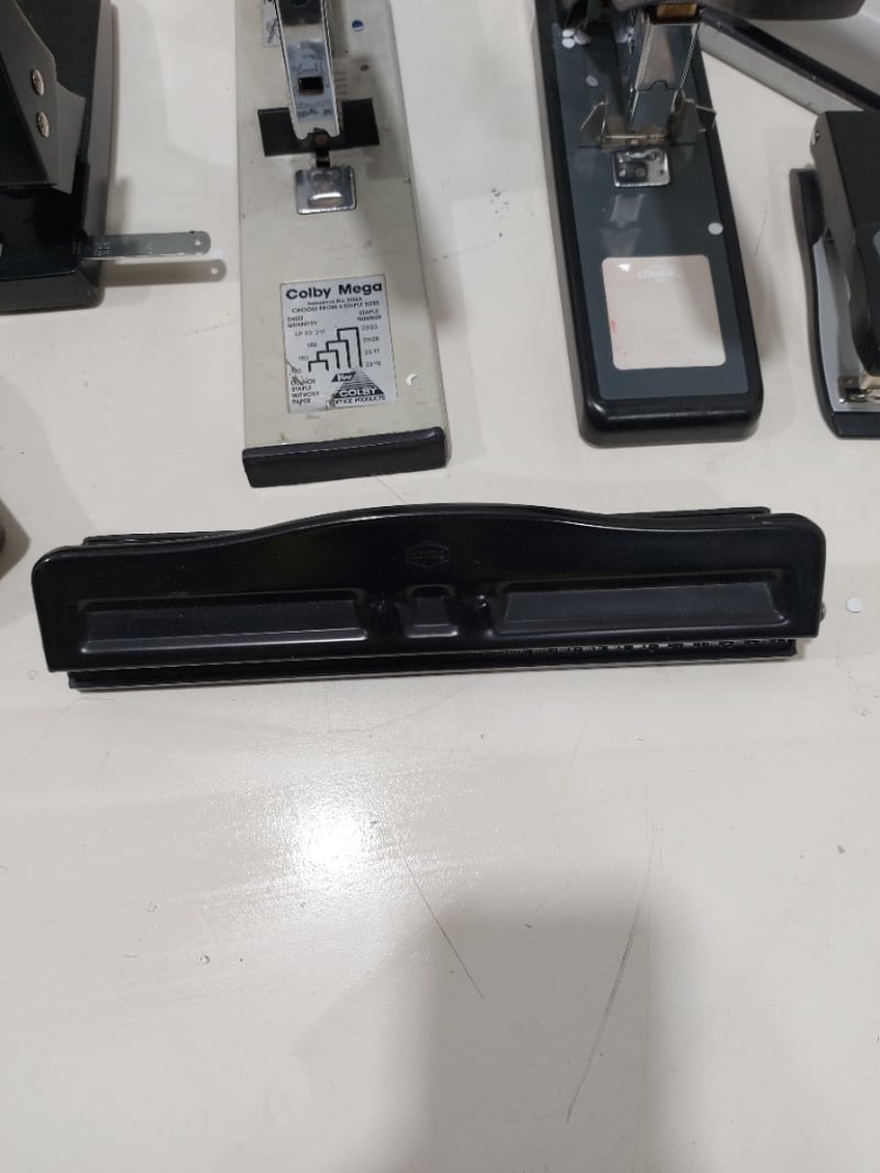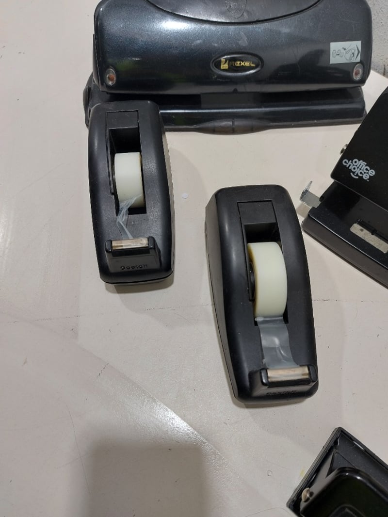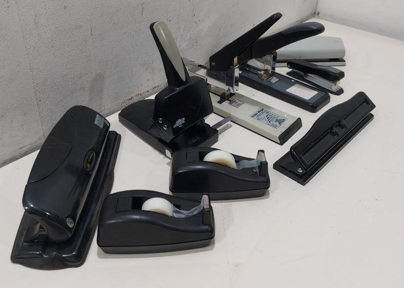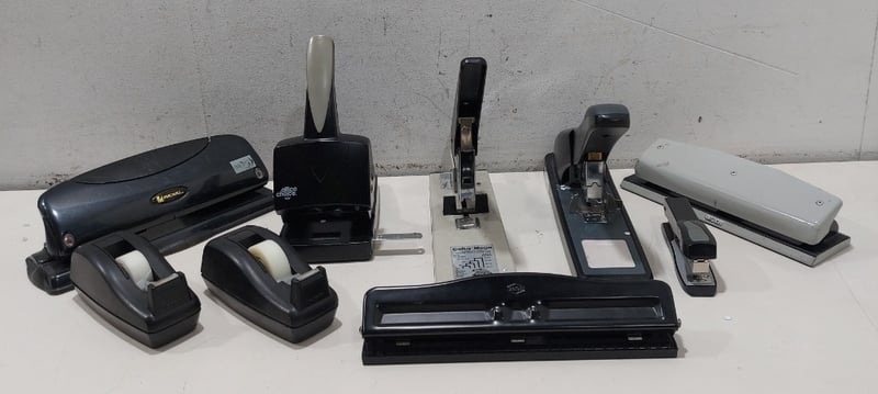 Miscellaneous - Including 2x large staplers, tape dispenser and 4x assorted hole punchesNote: signs of wear.