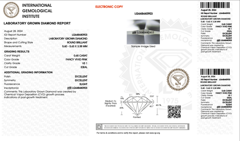 LAB GROWN DIAMOND ROUND 0.65CT PK VS1 Accompanied By Igi & Inscripted Report Number Igi - 648440903 0163124+5CROSSDOCK