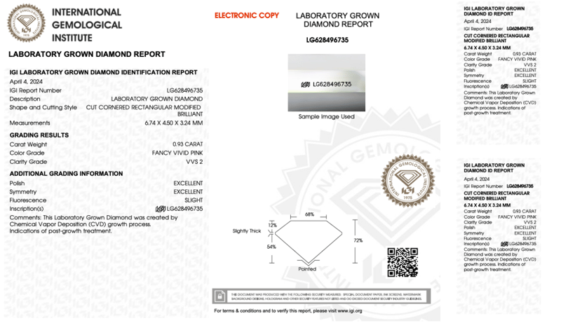LAB GROWN DIAMOND RADIANT 0.93CT PK VVS 2 Accompanied By Igi & Inscripted Report Number Igi - 628496735 0163124+7CROSSDOCK