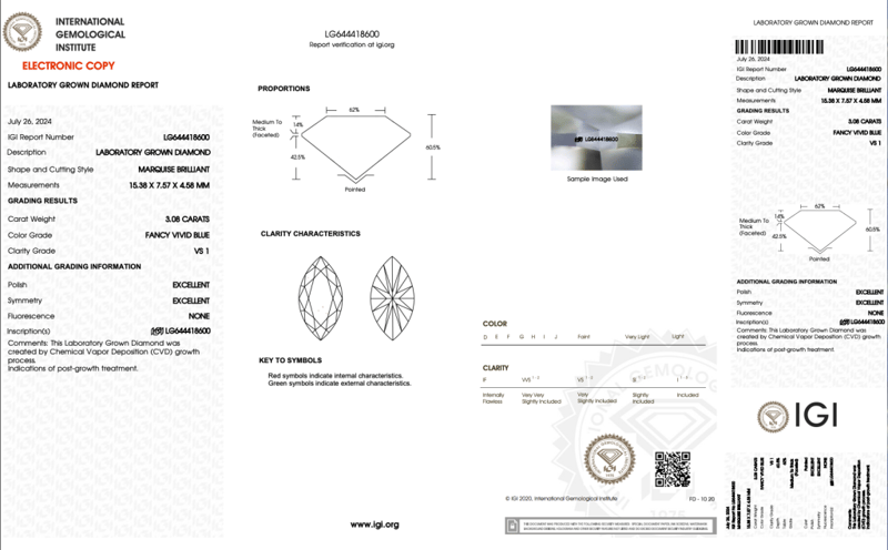 LAB GROWN DIAMOND MARQUISE 3.08CT FB VS1 Accompanied By Igi & Inscripted Report Number Igi - 644418600 0 163124+8 CROSSDOCK