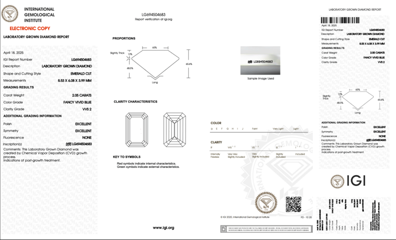 LAB GROWN DIAMOND EMERALD 2.05CT FB VVS2 Accompanied By Igi & Inscripted Report Number Igi - 694504683 0163124+14CROSSDOCK