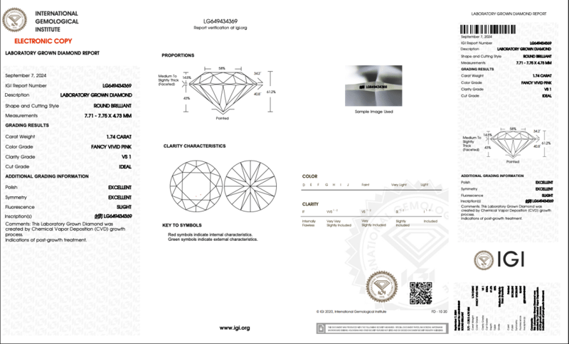 LAB GROWN DIAMOND ROUND 1.74CT PINK VS1 Accompanied By Igi & Inscripted Report Number Igi - 649434369 0 163124+18 CROSSDOCK