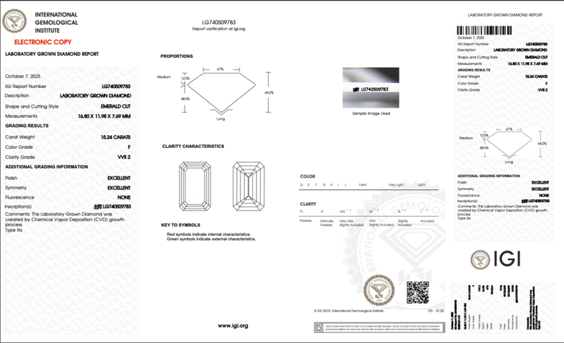 LAB GROWN DIAMOND EMERALD 15.24CT F VVS2 Accompanied By Igi & Inscripted Report Number Igi - 740509783 0 163124+39 CROSSDOCK