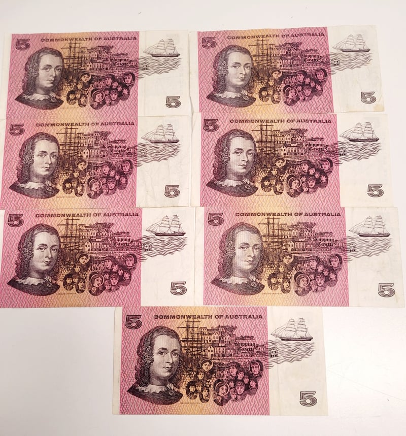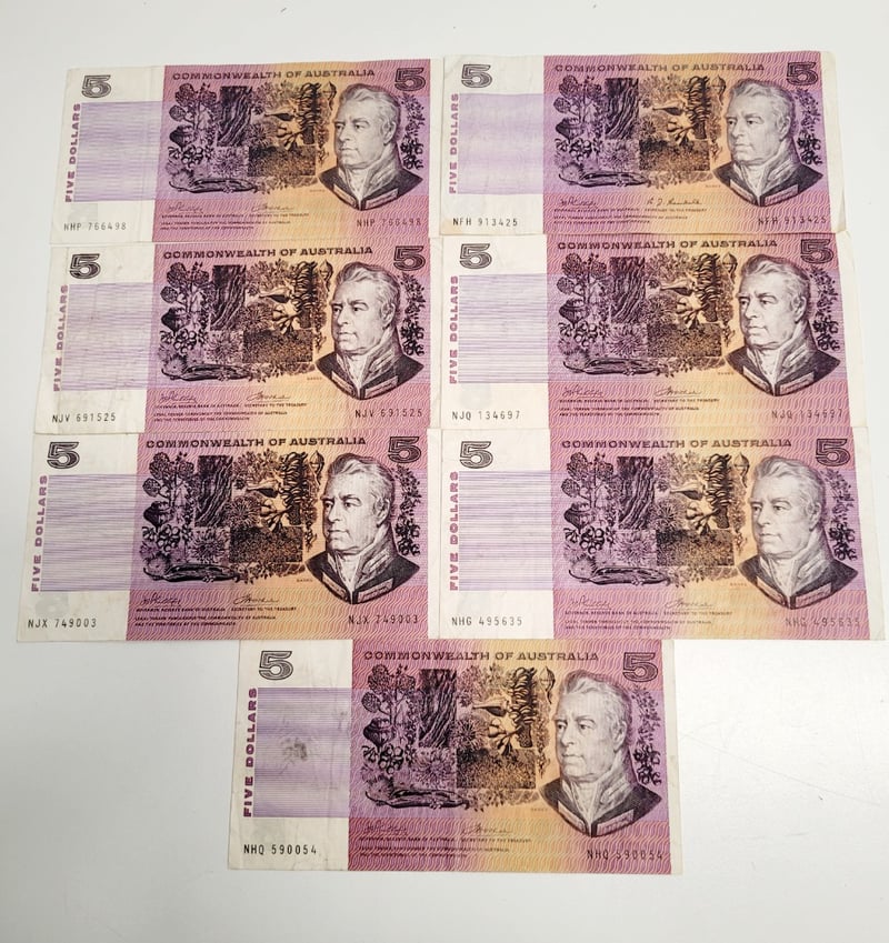 7X $5 AUSTRALIAN BANK NOTES. R203-VF R204-VFProvenance: $65 Value Per Note488544+11