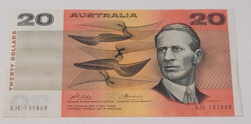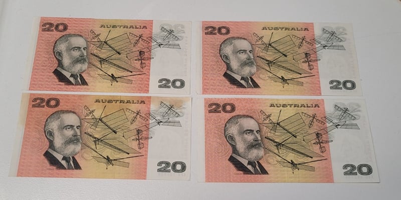 AUSTRALIAN $20 SIGNED BANKNOTE - XPC863700, XSG362334, XNV853282, XPA124959, R406