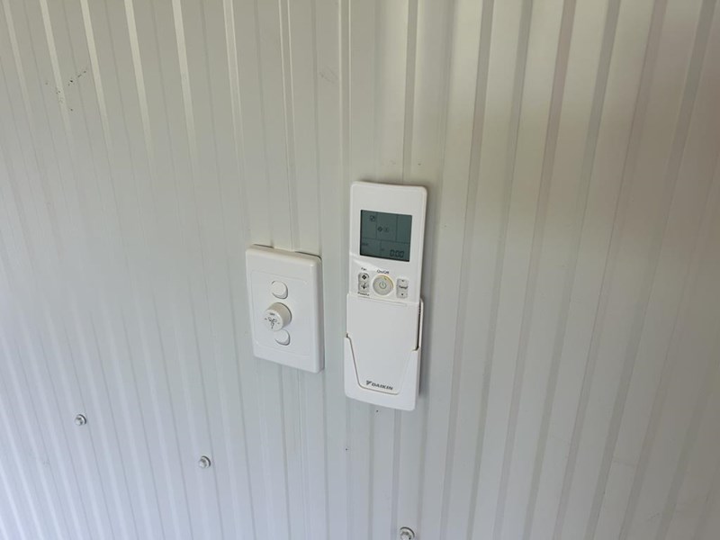 Description/Extras: 6m x 3.4m Demountable (Section J Compliant), Stairway, On frame with concrete footings included, Daikin Aircon, Fan, Led lighting, Power points, Switchboard, Smoke detector, Window with blackout blind.
