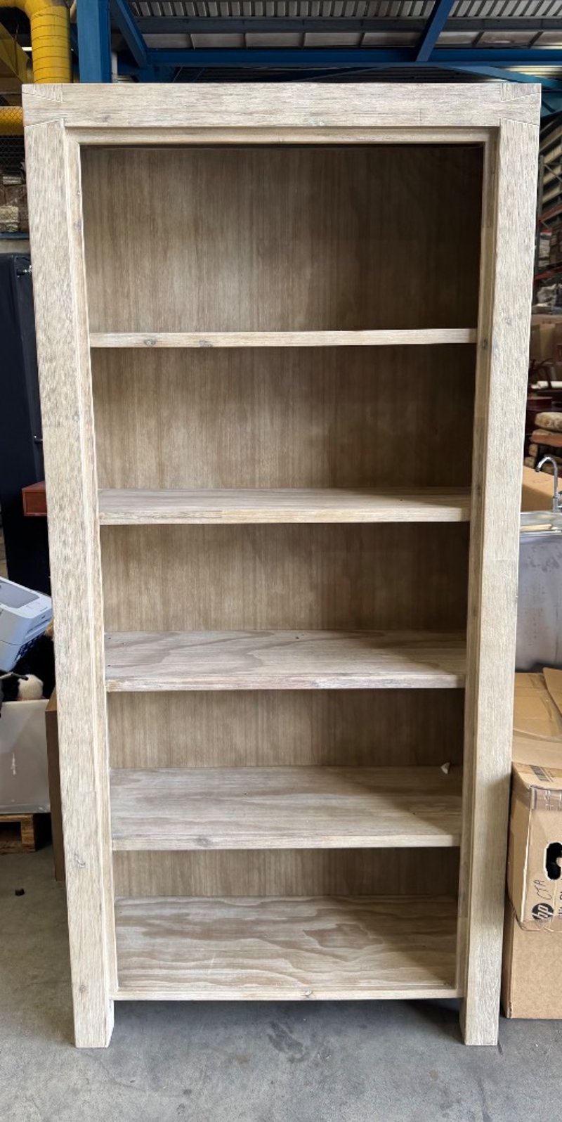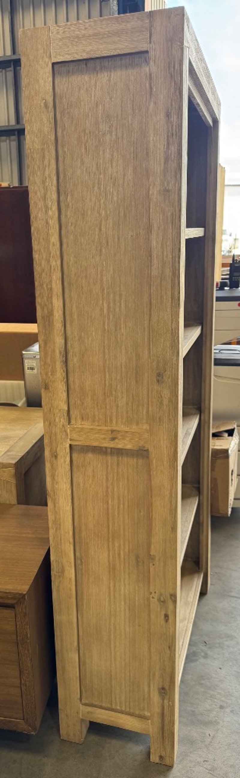 Wooden Book shelf Dimensions: 90cm x 35cm x 190cm Note: cleaning required