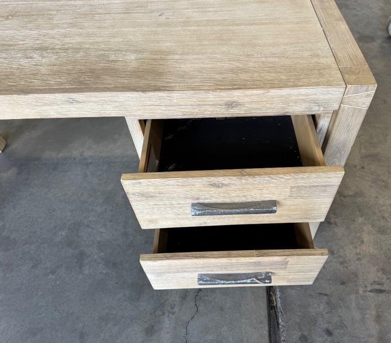 Wooden desk with drawers Dimensions: 150cm x 60cm x 76cm Note: marks and scratches visible
