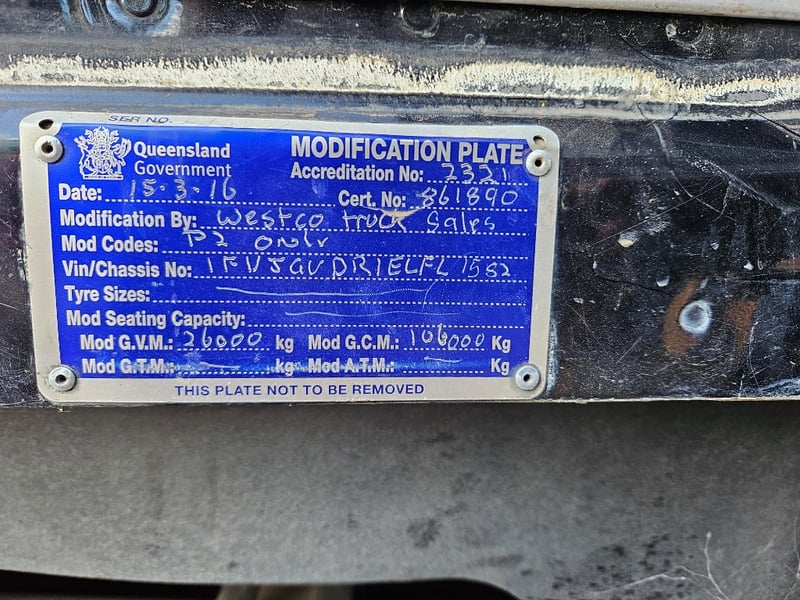 2013 Freightliner CoronadoYear: 2013Make: FreightlinerModel: CoronadoConfiguration: 6 x 4Odometer: 1,012,966 kmsVIN: 1FVJGVDR1ELFL1582Transmission: 18 Speed ManualEngine: 6 CylinderEngine Number: 472907S0175686 (As Per PPSR)Notes/Extras: B Double Rated, Jost Turntable, airbags, electric mirrors, recent new batteries, diff and cross locks, 3/4 bunk bed, power steer, quad fuel tanks, hydraulics, 2 sets controls GVM: 26,000 kilogramsGCM: 106,000 Kilograms