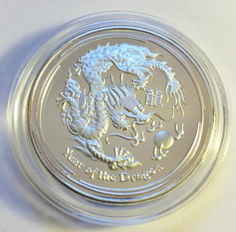 2012 1 OUNCE "YEAR OF THE DRAGON" COIN FINISHED IN 999 FINE SILVER IN ACRYLIC CAPSULE These Coins Are Fun To Collect Or Make Fantastic Christmas Or Birthday Presents. This Coin Is Copper/Nickle Finished In 999 Fine Silver, They Are Not Solid Silver 311188+48