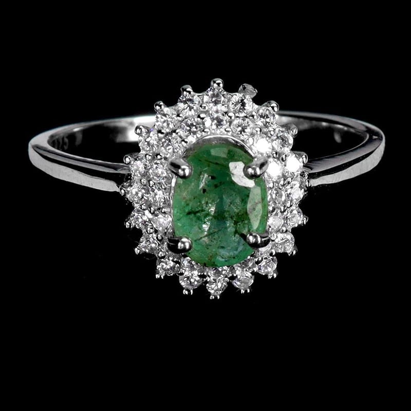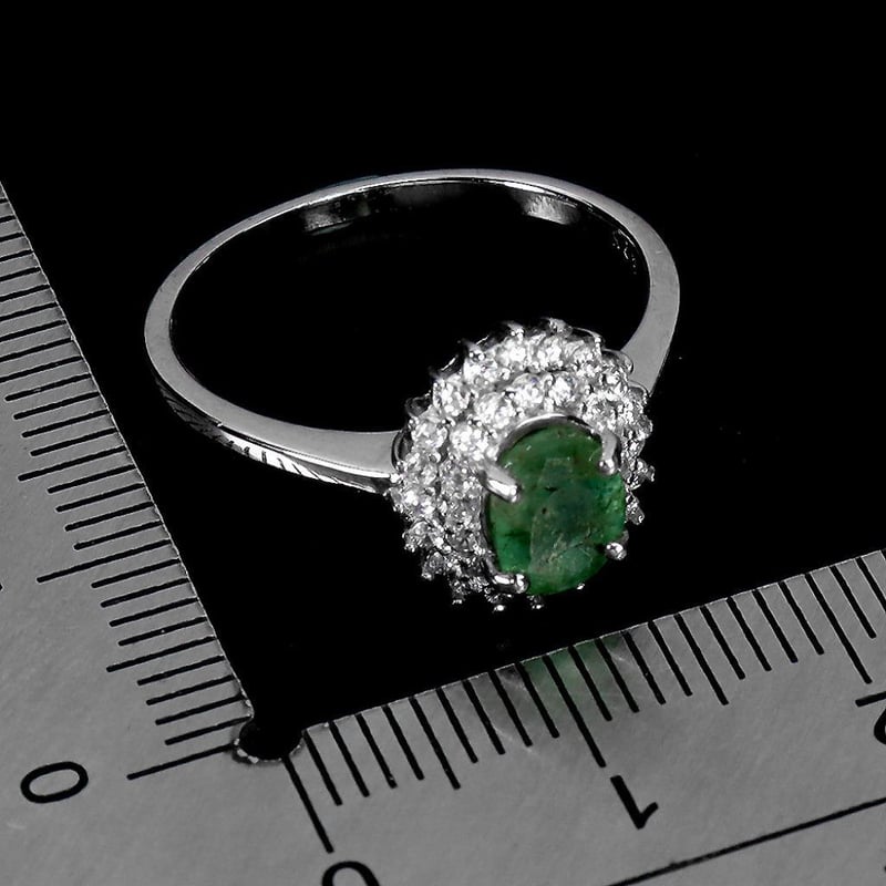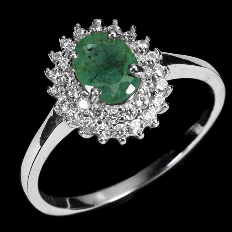NATURAL EMERALD RING Natural Emerald Ring. Made In Solid Sterling Silver And Plated In14K White Gold Features Natural Green Emerald And Sparkling Czs. Ring Size 7 Condition: Good - Refer Images 0488577+2