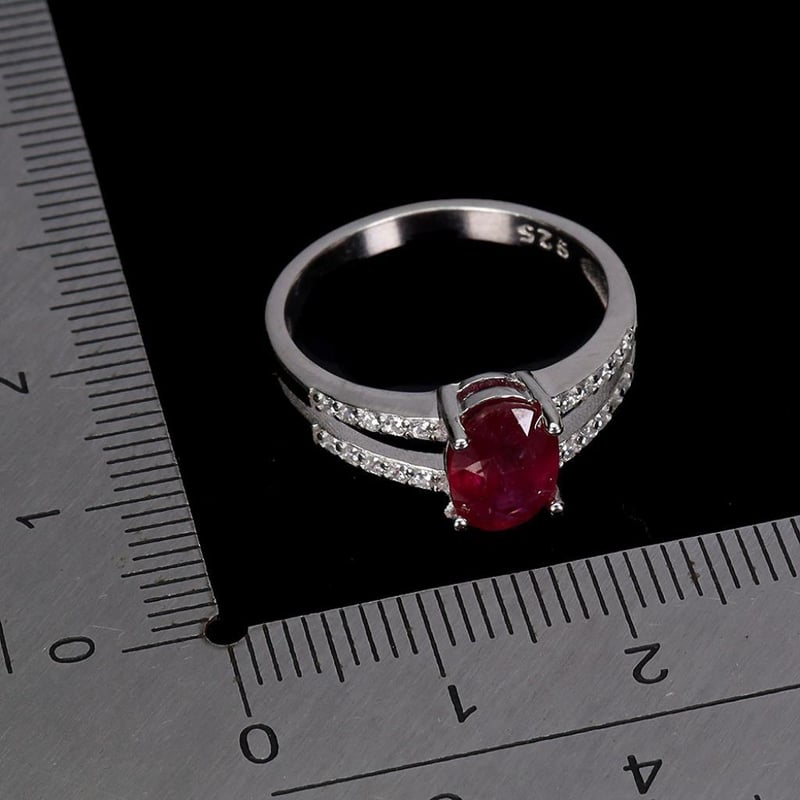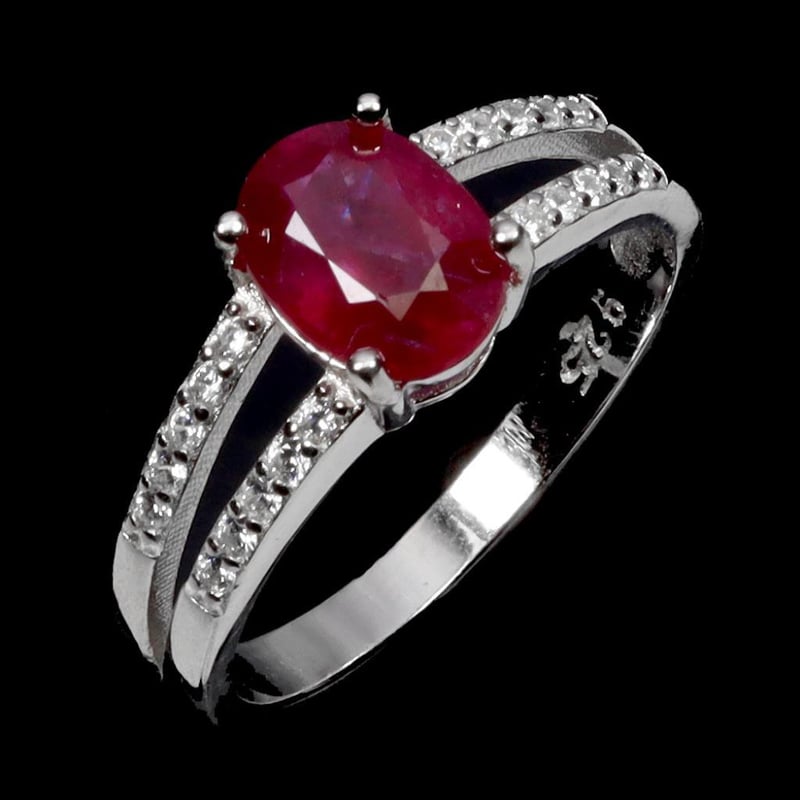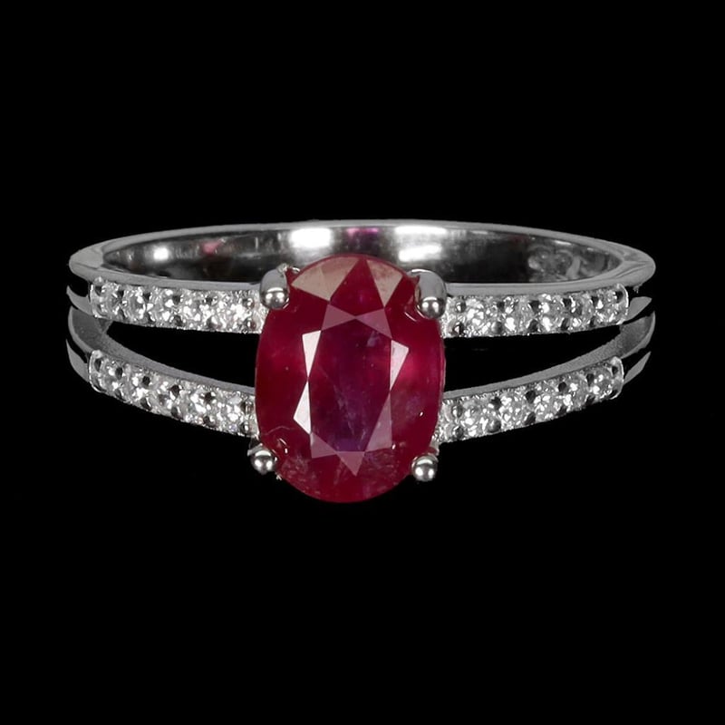 NATURAL RUBY RING. Natural Ruby Ring. Made In Solid Sterling Silver And Plated In 14K White Gold. Features Natural Red Ruby And Sparkling Czs. Ring Size 7 Condition: Good - Refer Images 0488577+4