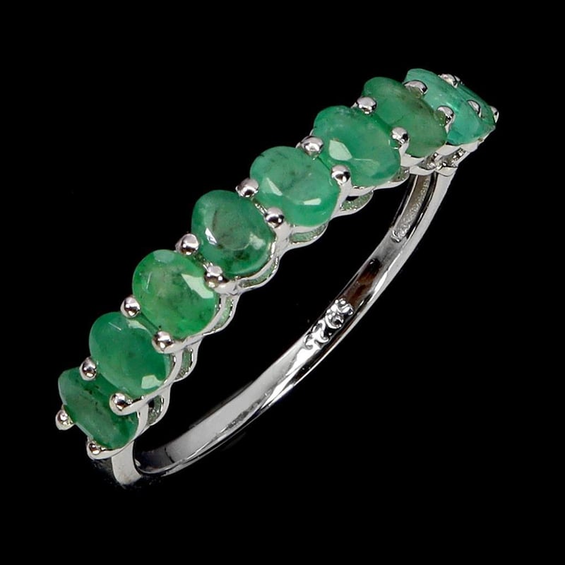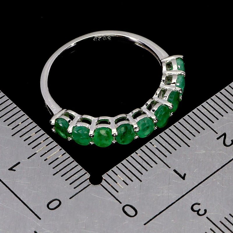NATURAL EMERALD RING. Natural Emerald Ring. Made In Solid Sterling Silver And Plated In14K White Gold Features Natural Green Oval Facet Emeralds. Ring Size 8.5 Condition: Good - Refer Images 0488577+13