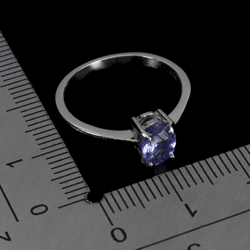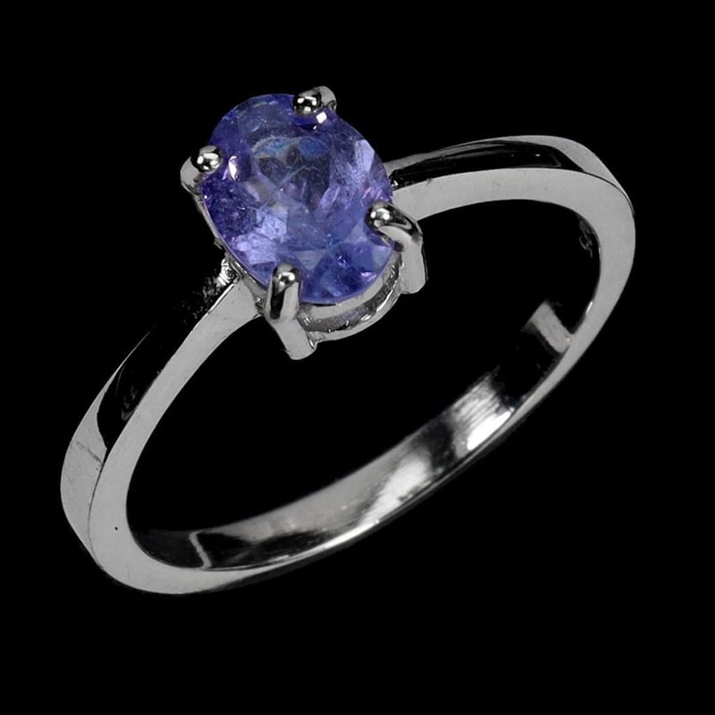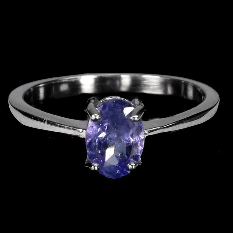 NATURAL TANZANITE SOLITAIRE RING. Natural Tanzanite Solitaire Ring. Made In Solid Sterling Silver And Plated In14K White Gold. Features One Natural Violtish Blue Tanzanite Measuring 7X5Mm. Ring Size 6 Condition: Good - Refer Images 0488577+15