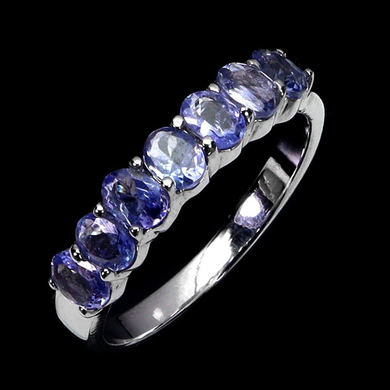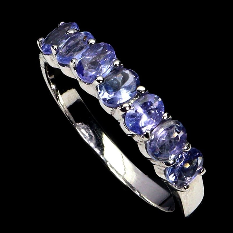 NATURAL TANZANITE ETERNITY BAND RING. Natural Tanzanite Eternity Band Ring. Made In Solid Sterling Silver And Plated In14K White Gold. Features Natural Violtish Blue Tanzanite'S. Ring Size 8 Condition: Good - Refer Images 0488577+18