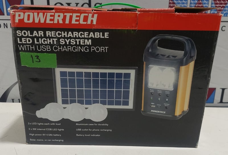 Light System - Powertech, solar, LED, USB charging port (in original box)