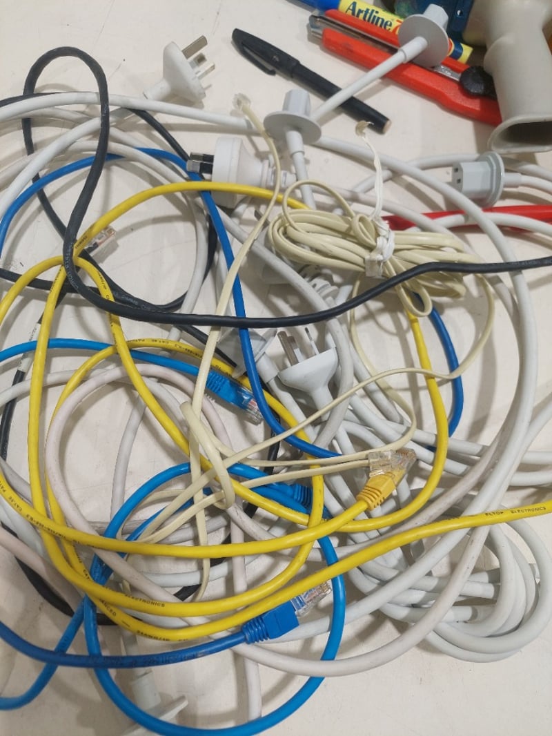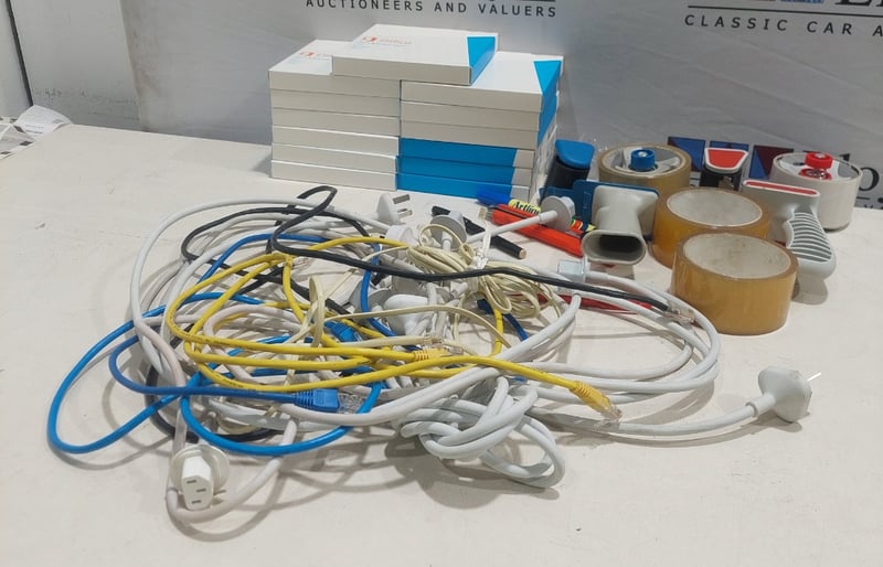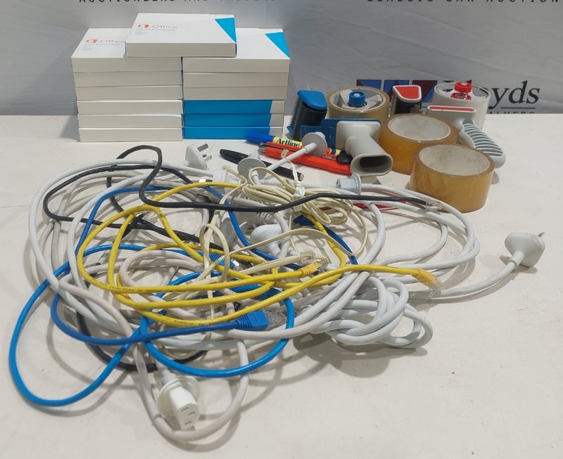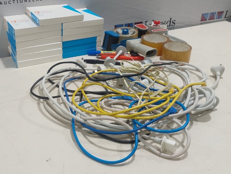 Assorted lot includes, Office home and business 2013, tape Dispensers,power cables and more...
