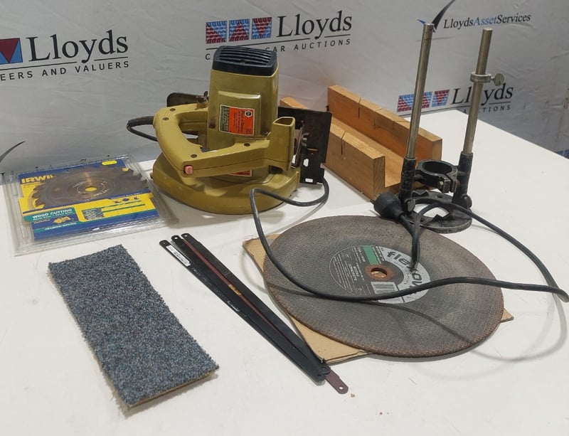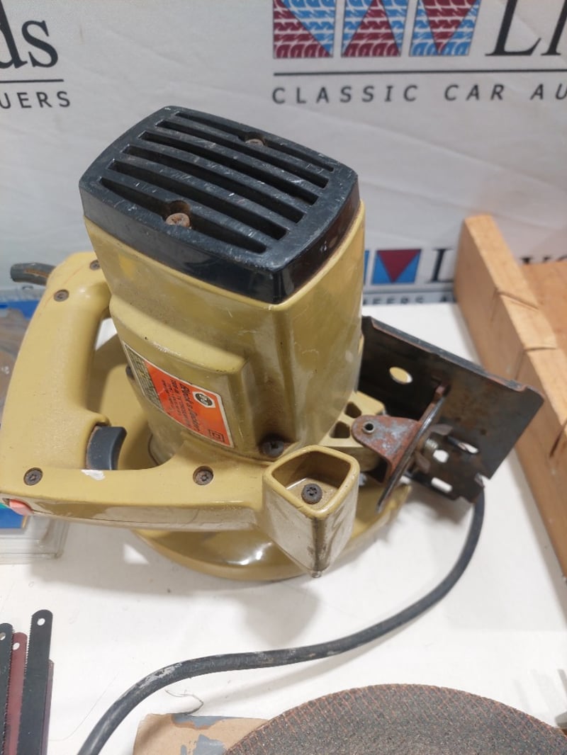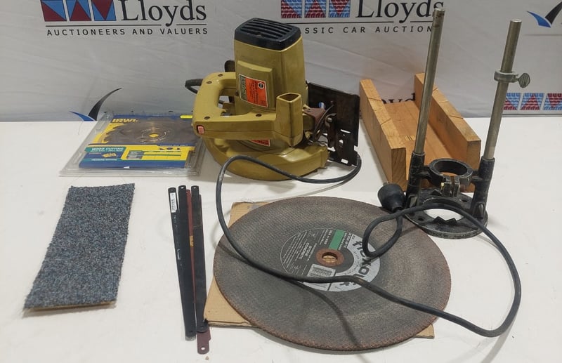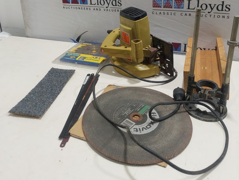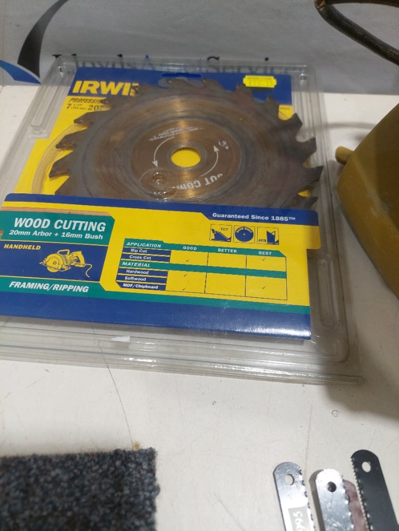 Electric circular saw Black and Decker brand includes, blades and accessories. Sold as lot. Notes: item untested and signs of wear.