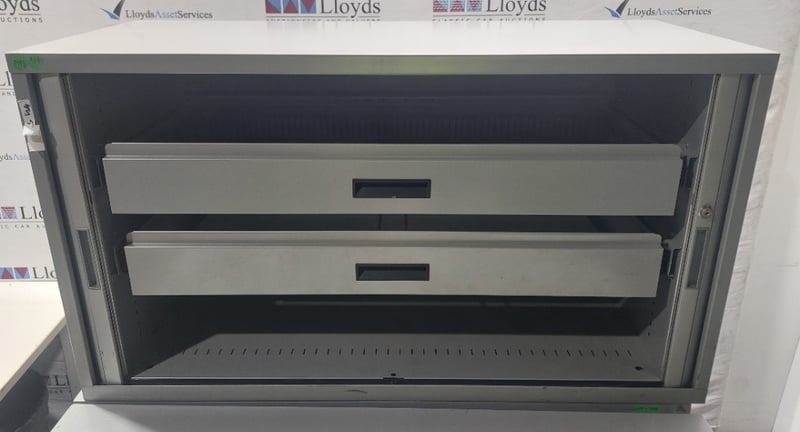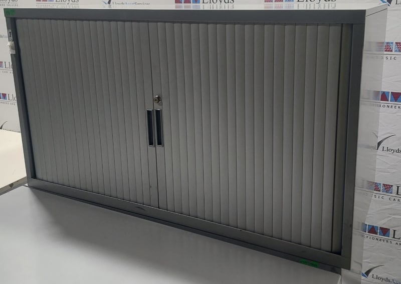 Stationery Cabinet - grey steel, tambour doors, 750mm