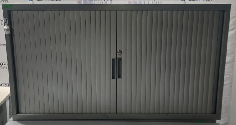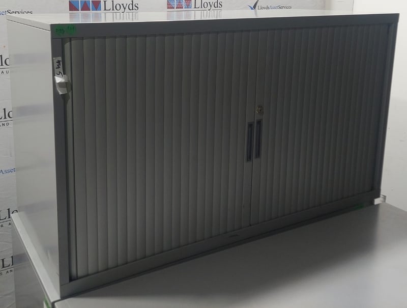 Stationery Cabinet - grey steel, tambour doors, 750mm
