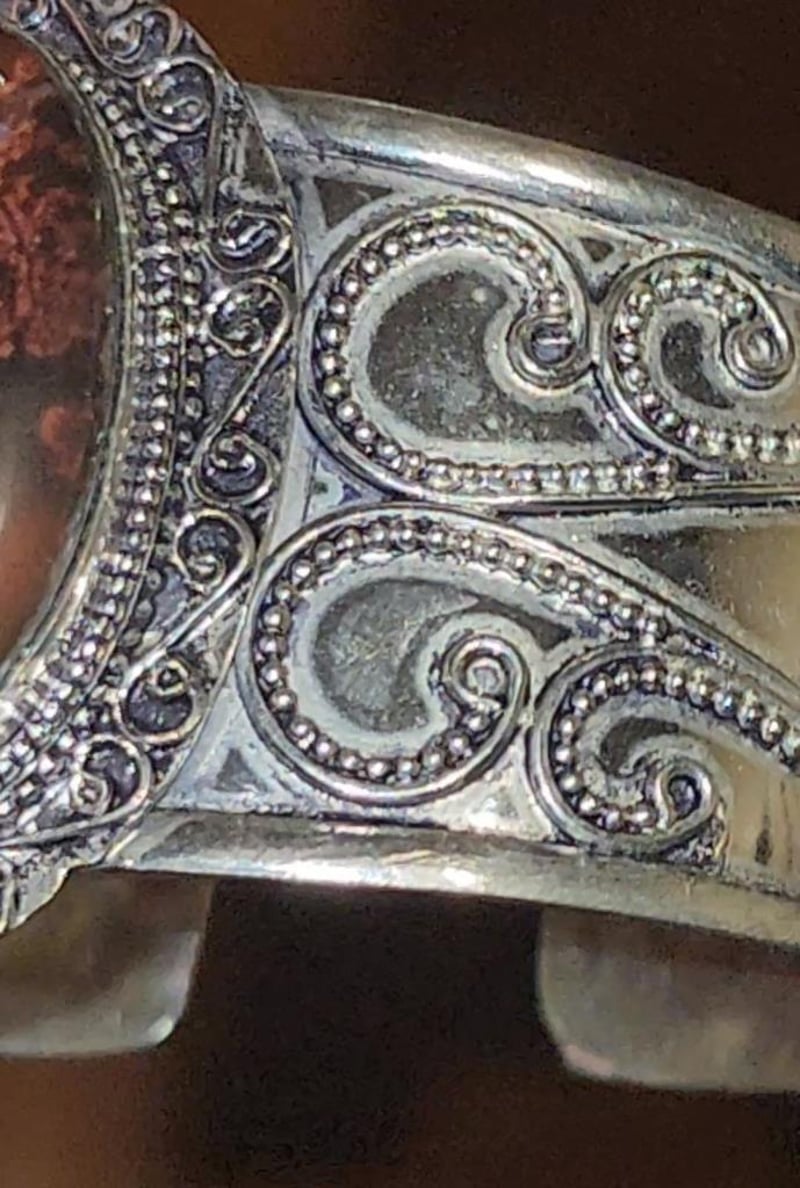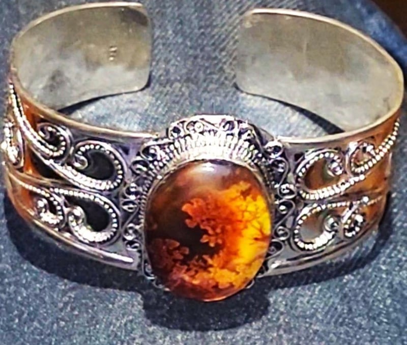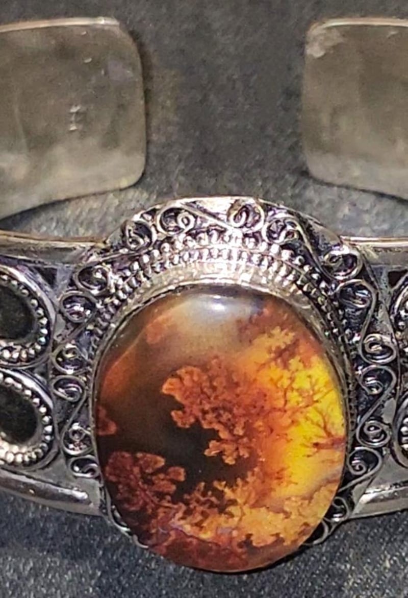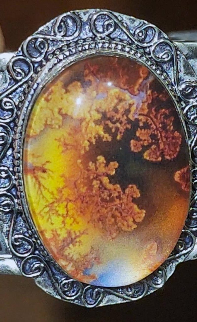 227 CARATS DEDRITE AGATE TRIPLET AND STERLING SILVER CUFF BRACELET.