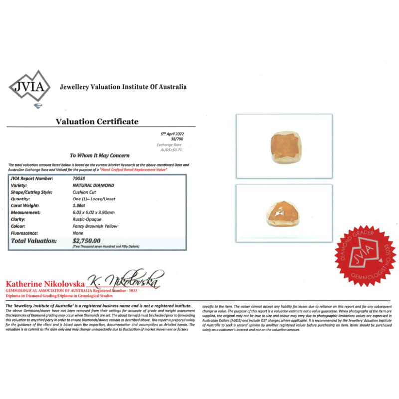 Cushion Cut, Fancy Brownish-Yellow, Rustic-Opaque, Loose, Unset.