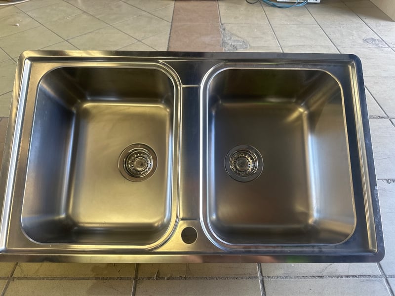 Ex-Display Double Sink, Silver In ColourNOTE PARTS NOT INCLUDED Dimensions W50cm x L86cm x D 20cm