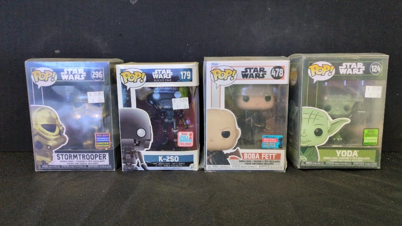 1X Stormtrooper Box Number 296, 1X K-2So Box Number 179, 1X Boba Fett Box Number 478, 1X Yoda Box Number 124