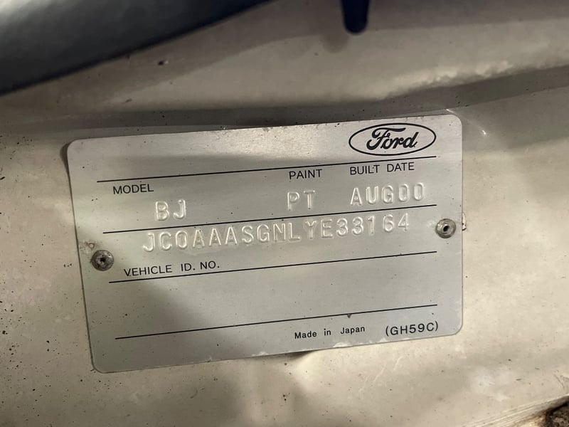2000 Ford Laser KN Year: 2000 Make: Ford Model: Laser Series: KN Body: 4-Door Sedan Drive Type: Front wheel drive Engine: 1.6 Petrol Transmission: Automatic Colour: White Seats: 5 Description/extras: Air Conditioning, SRS, Central locking. Radio not working. VIN: JC0AAASGNLYE33164 ENG No: ZM432887 (Key #39B Marple) Lloyds stock #580707+1