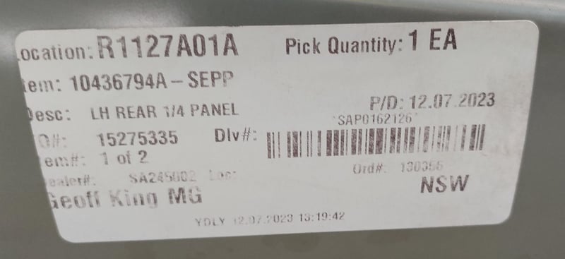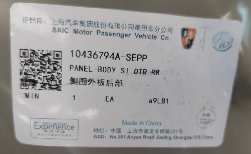 L/H rear 1/4 panel for MG.
