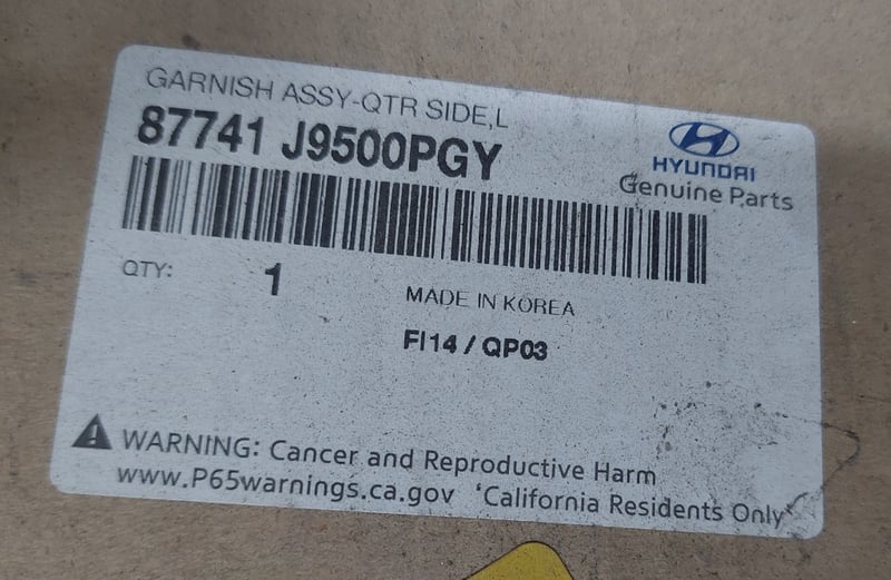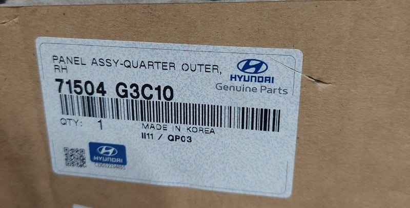 Assorted car parts including, Genuine Mitsubishi Outlander Sport Left-Hand Outer Quarter Panel, Hyundai Genuine Part Panel Assy-Quarter Outer RH, Steel Replacement Bonnet (Hood) for a Holden Colorado RG (2012–2016) and more...Sold as a lot.Note: item is untested, signs of wear.
