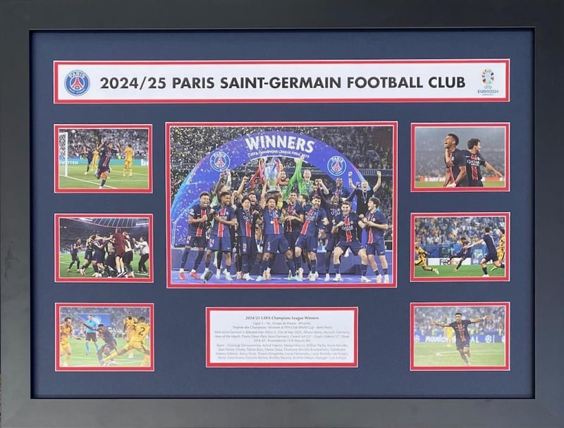 PARIS SAINT-GERMAIN FOOTBALL CLUB, 2024/25 UEFA CHAMPIONS LEAGUE WINNERSFramed Using Double Mats, Glass And A Black Frame Condition: Good - Refer Images488568+15