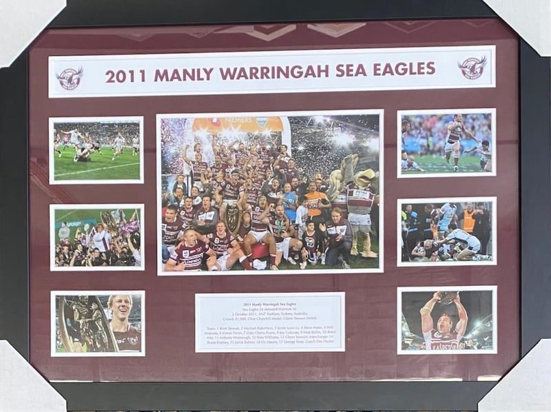 MANLY WARRINGAH SEA EAGLES, 2011 NRL PREMIERSFramed Using Double Mats, Glass And A Black Frame Condition: Good - Refer Images488568+21