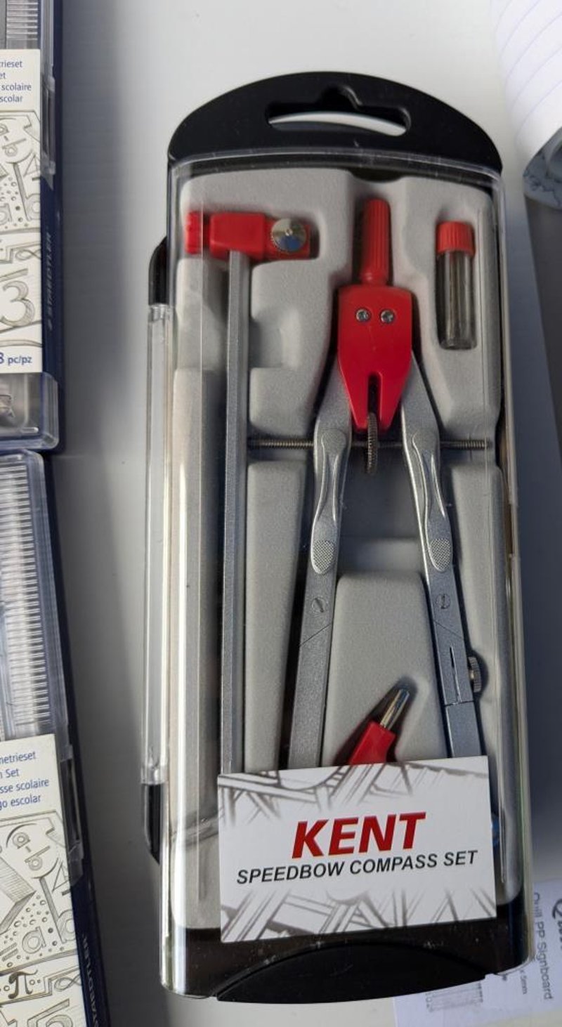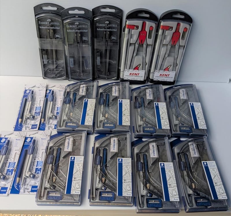Bulk lot of Staedtler, Faber-Castell & Kent compass mathematical sets, $250 approx value, qty 17 sets (sold as lot)