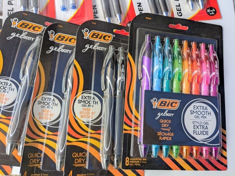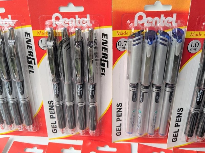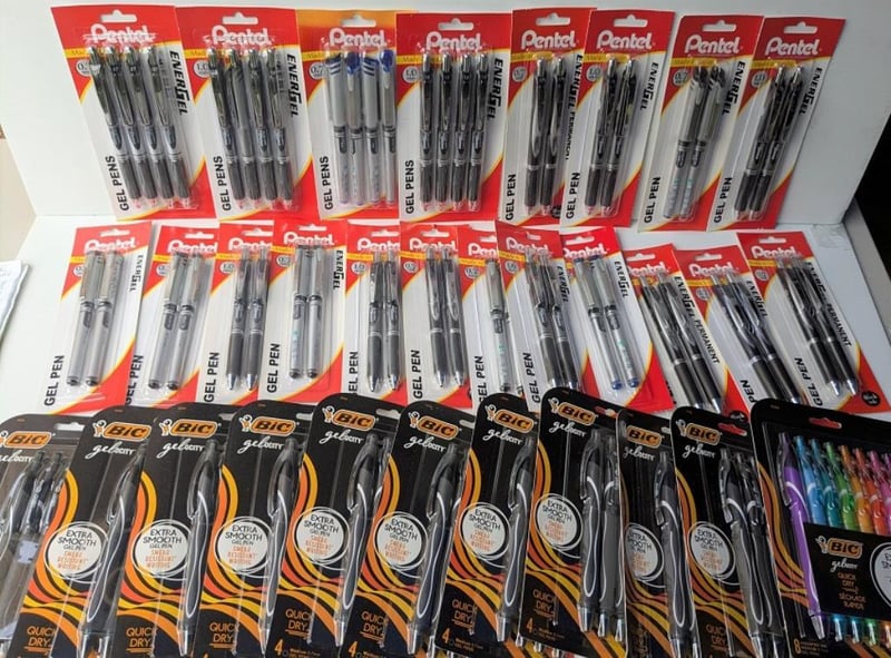 Bulk lot of Pentel EnerGel & Bic gel pens, $350 approx value, qty of 30 packs (sold as lot)