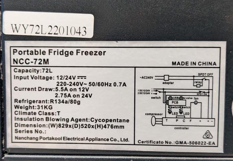 Portable Fridge freezer with 240V Wall charger model NCC-72M 83X52X48cm 31kg