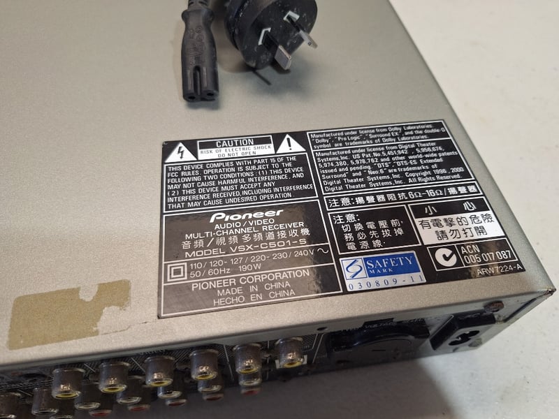 Pioneer Audio/Video Multi-Channel Receiver, Model VSX-C501-S